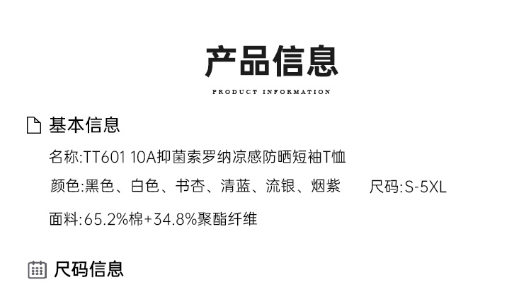 【10A抑菌索罗纳凉感防晒短袖T恤】男女同款圆领运动短袖T恤 透气休闲半袖上衣TT601