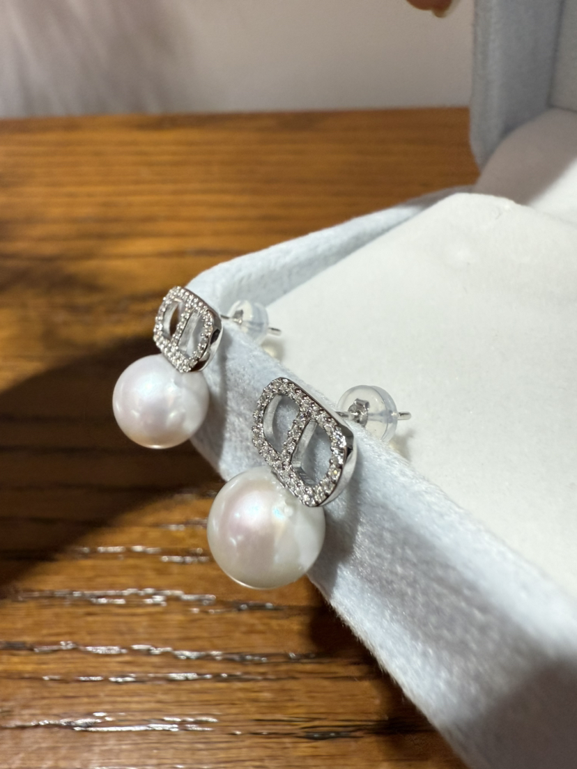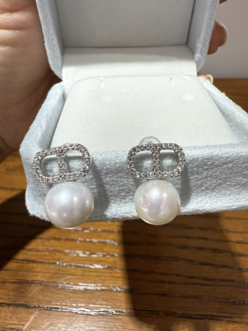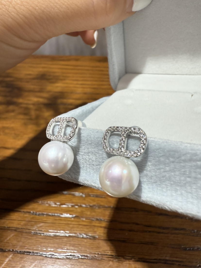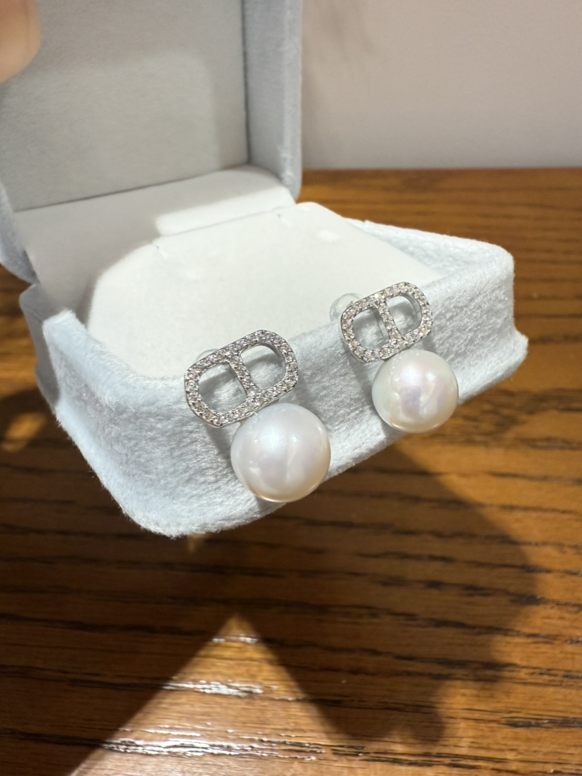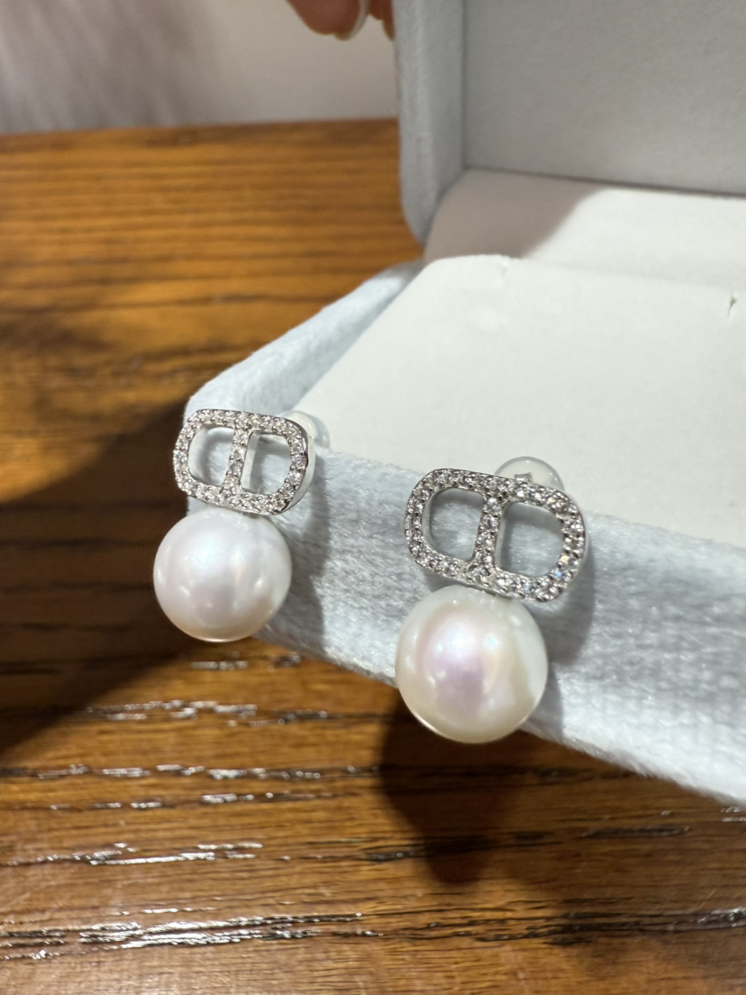 84-5 统货/直发 CD风 爱迪生珍珠耳钉 纯银高碳钻 9-10mm正圆强光爱迪生珍珠 贵气时髦