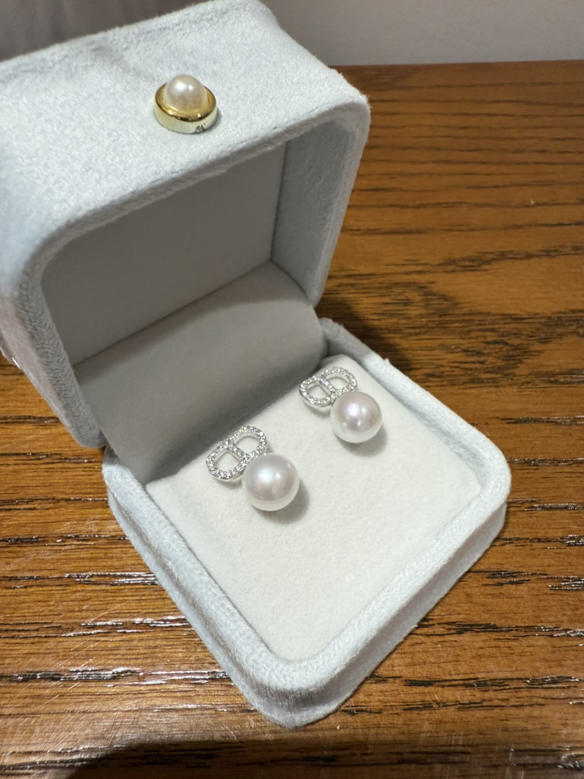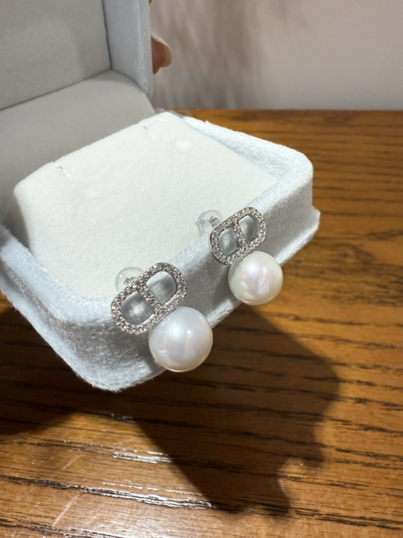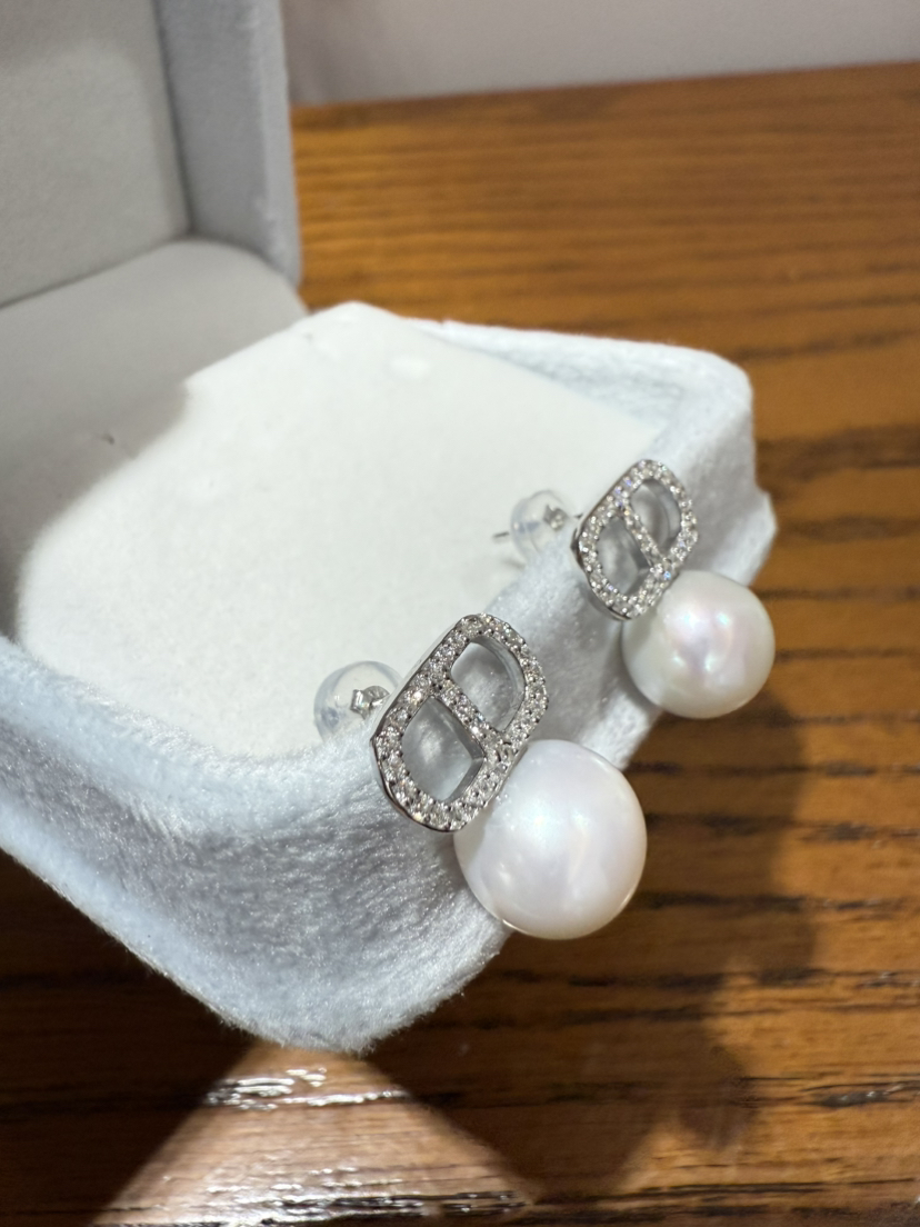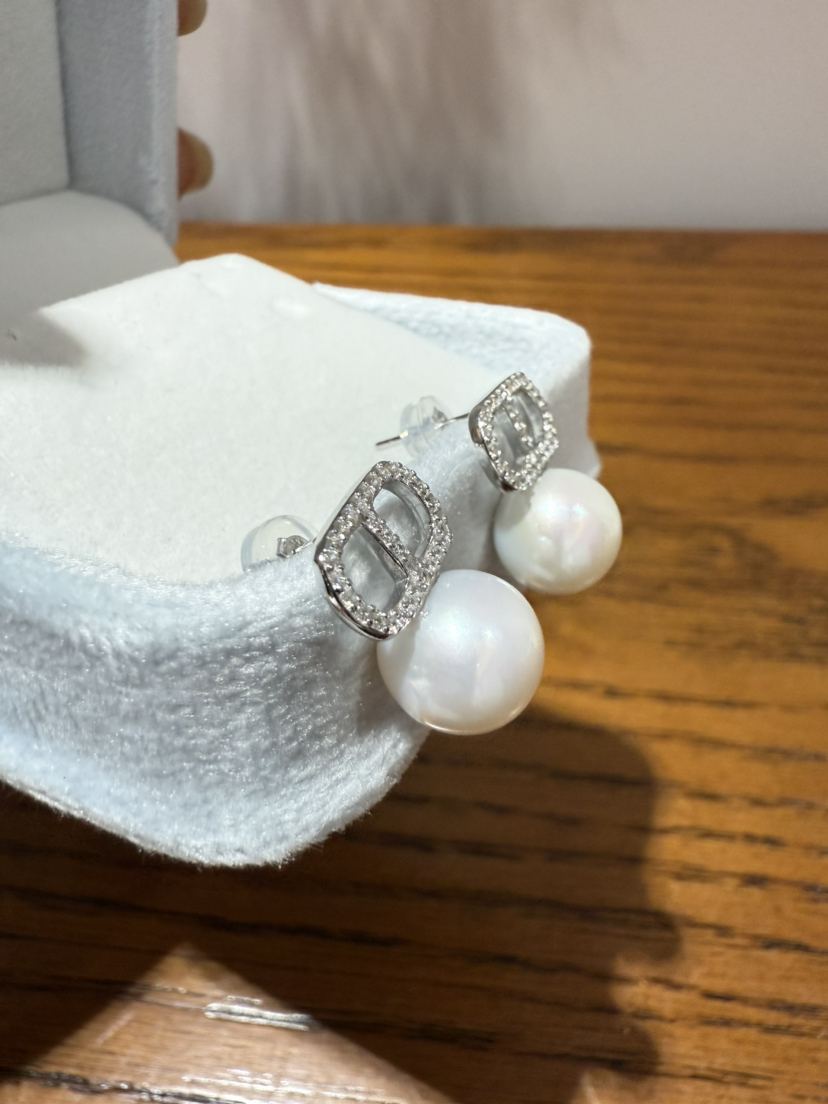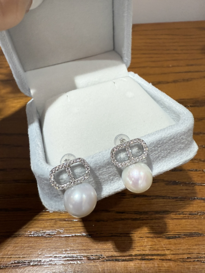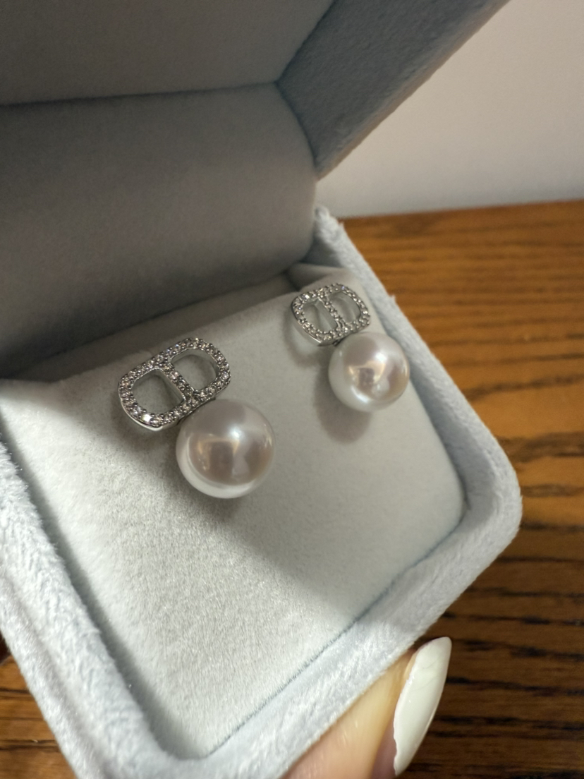 84-5 统货/直发 CD风 爱迪生珍珠耳钉 纯银高碳钻 9-10mm正圆强光爱迪生珍珠 贵气时髦