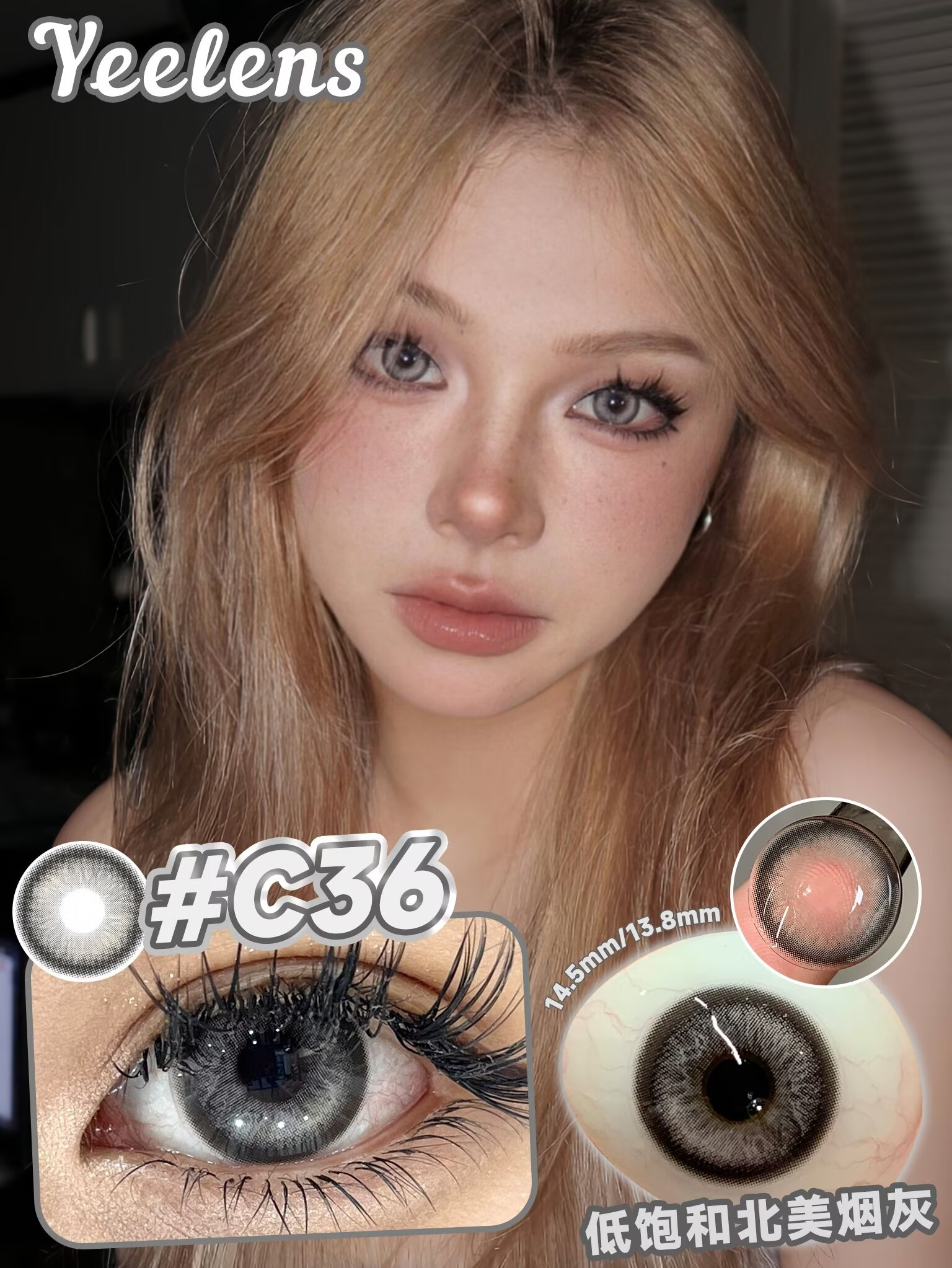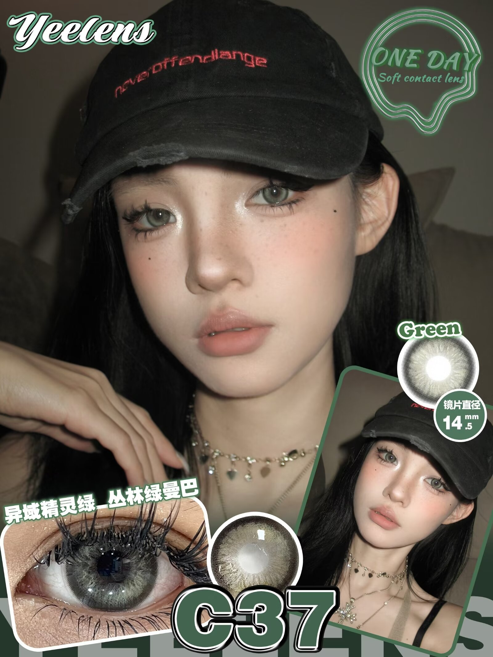 yeelens日抛 C35 棕/C36 灰/C37 绿 14.5mm 非离子 日抛无售后!!