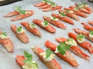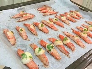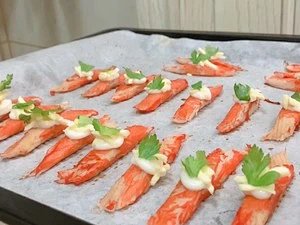 【简单快手零失败超级好吃の日式炙烤蟹棒】1.蟹棒取出解冻~2.解冻完成后加入烤箱180度烤两分钟左右……如果懒得解冻可以将蟹棒直接放入烤箱中一起预热烤制蟹棒稍干,没有多余水分。3.蟹棒的味道不是很丰富,这时候调味酱料就可以发挥用途了,在蟹棒上刷上一层酱,完后刷上一层油(如图:此时蟹棒已经是干干的了)