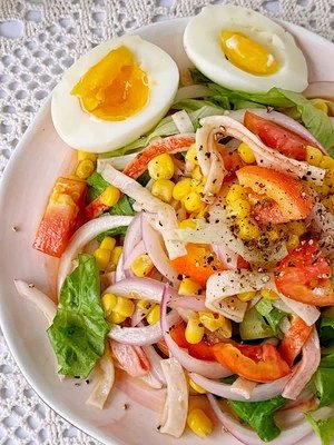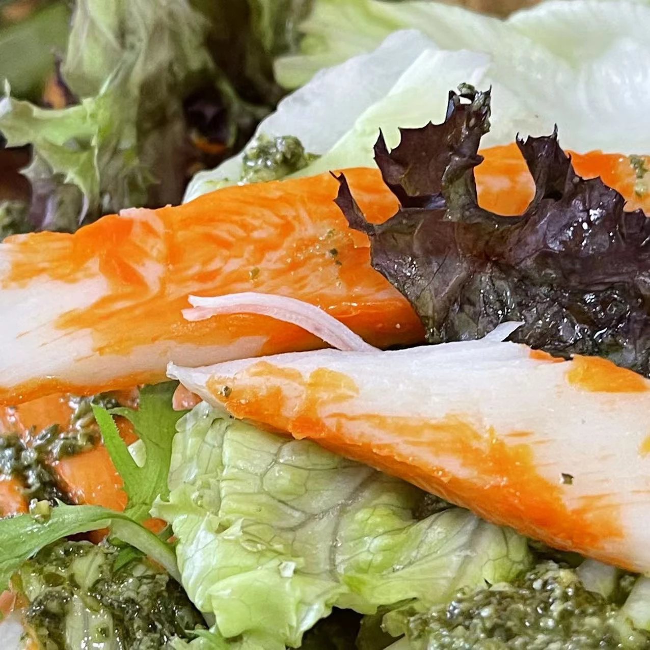 5.放到吐司上,就是好吃又好看的开放式三明治,早餐轻松搞定~【生菜蟹柳沙拉】生菜蟹柳沙拉,无需多余调料,日式油醋汁,自己在家就能做出低卡轻食沙拉1.准备食材(生菜、圆葱、鸡蛋、玉米粒、蟹柳、日式油醋汁)2.由于蟹柳是即食的,无需焯水。把玉米粒焯水3.鸡蛋煮熟4.盆内准备洋葱、生菜、番茄切块,加入焯好的玉米粒5.将蟹柳撕成条加入,煮熟的鸡蛋对半切开6.加入油醋汁7.撒上黑胡椒碎