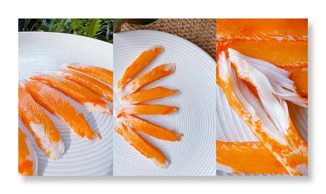 买蟹柳还是要擦亮眼睛哦~这样一对比是不是就一目了然?蟹柳品质对比