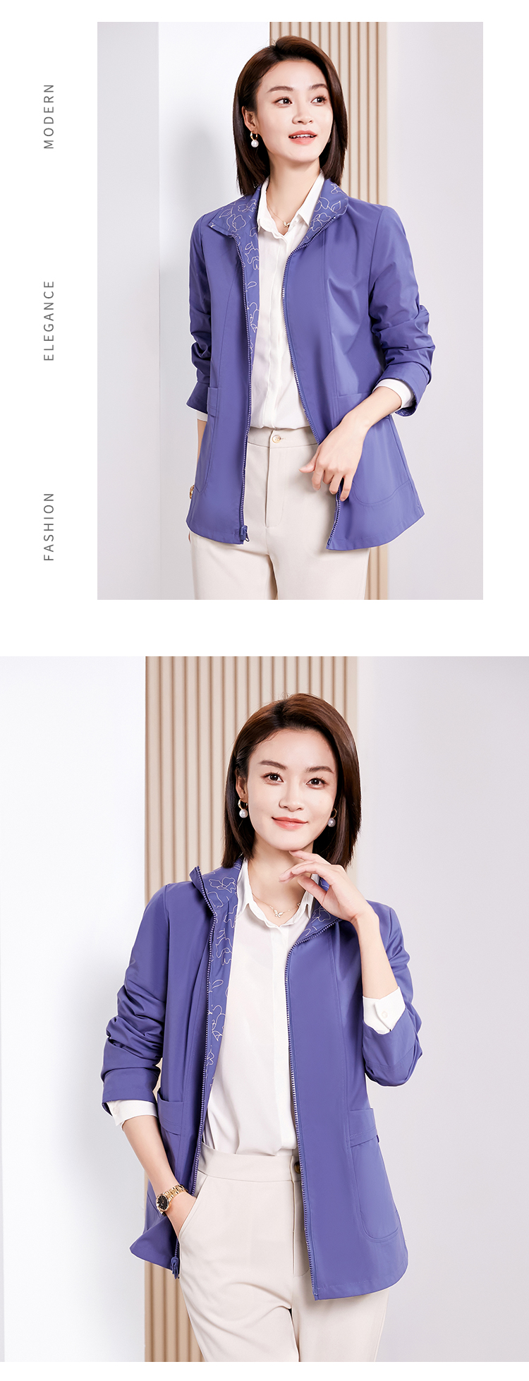 佐尔美春季新款 双面穿时尚气质连帽休闲短风衣外套女E33FD27