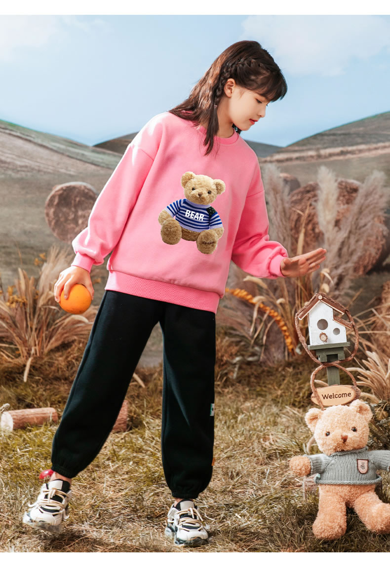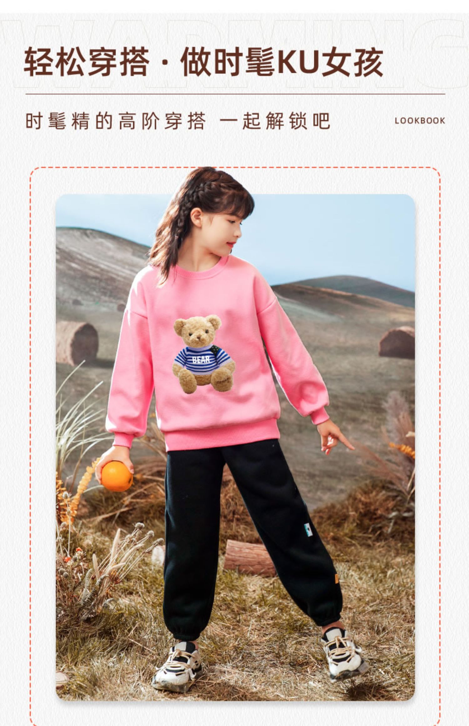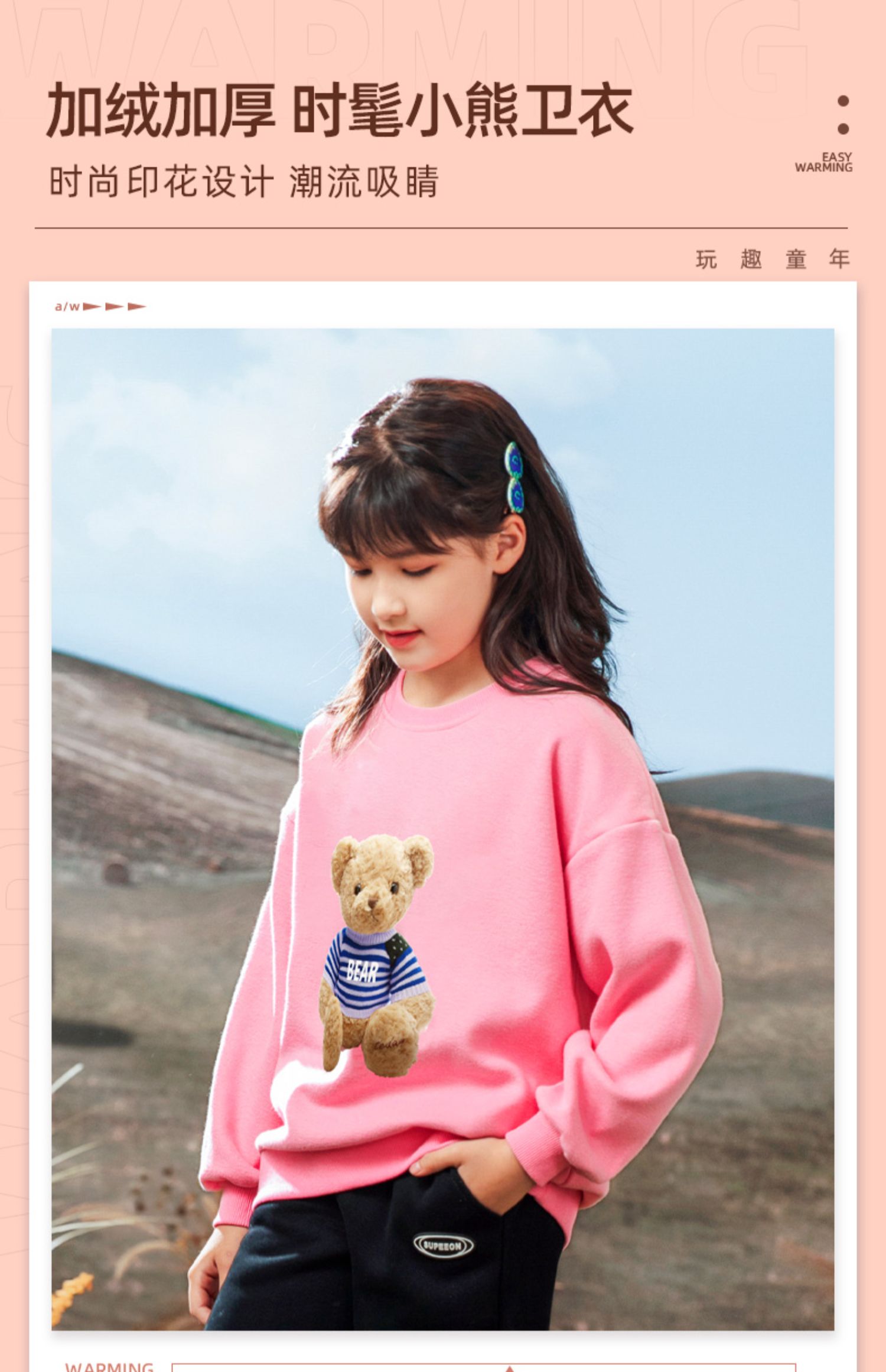 贝田2022新款女童加绒卫衣儿童加厚秋冬款中大童冬季炸街保暖上衣