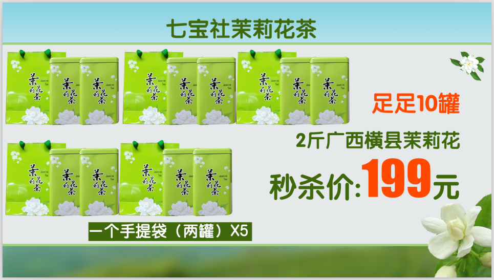 七宝社茉莉花茶,100克/罐*10、手提袋*5