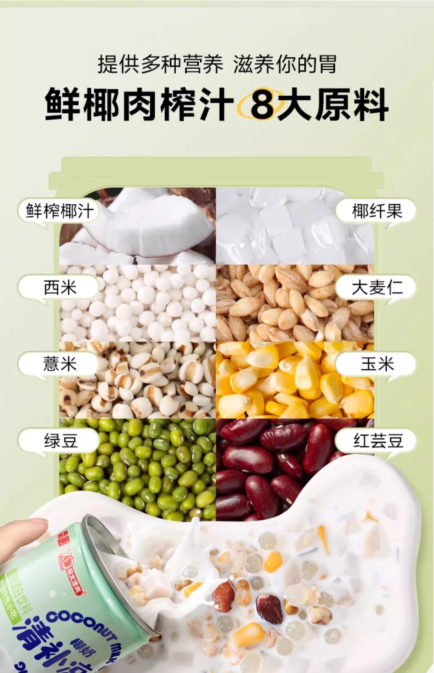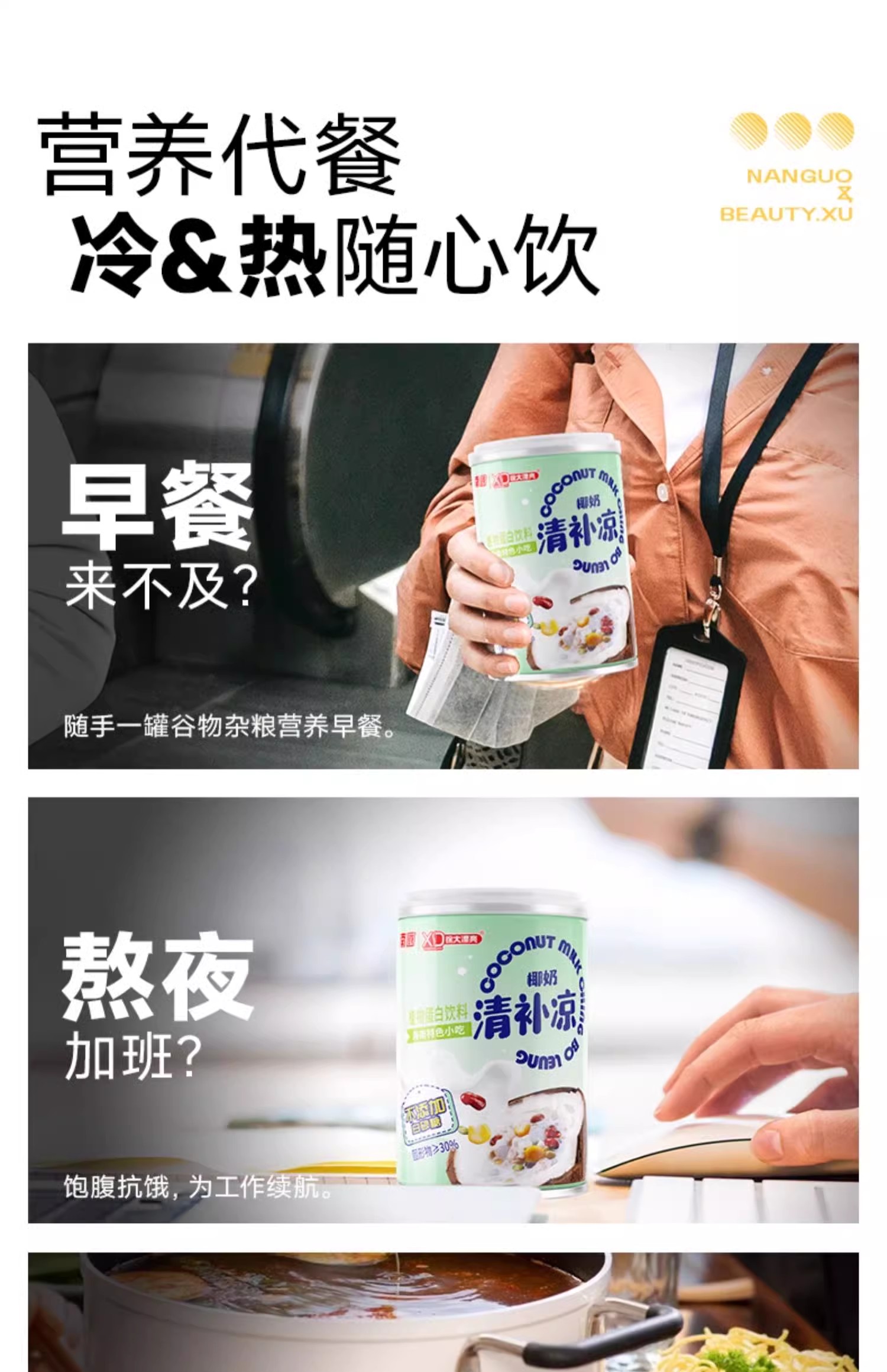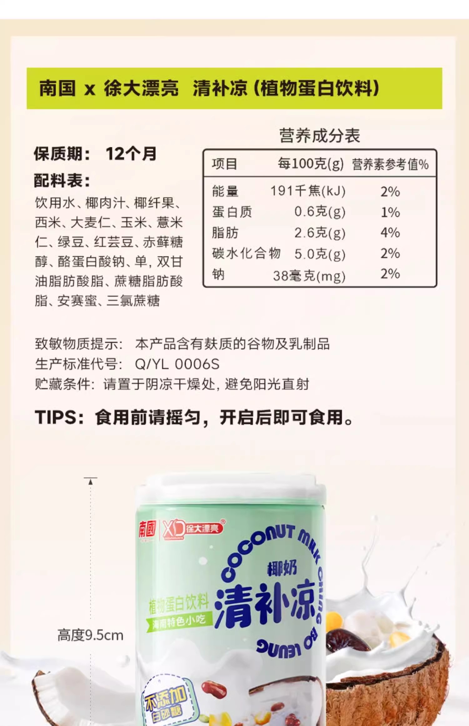 南国椰奶清补凉 多种优质谷物,健康又饱腹 收到后冰箱冷藏风味更佳 椰奶 绿豆玉米植物蛋白谷物饮料 海南特产代餐椰子汁饮料 海南特产