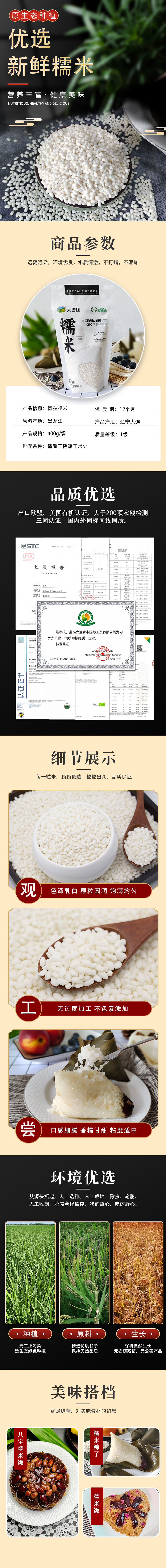 高端大雪团圆粒糯米 出品欧盟 美国有机认证 >200项农残检测