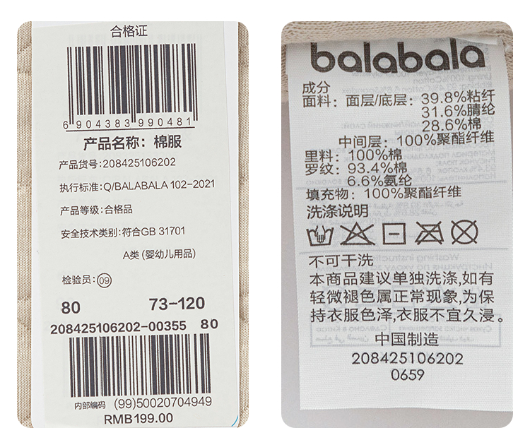 巴拉巴拉balaOne儿童棉服婴儿外套新款2025秋冬保暖舒适可爱柔软