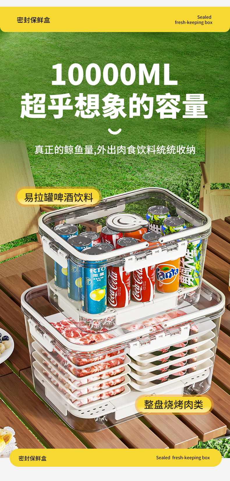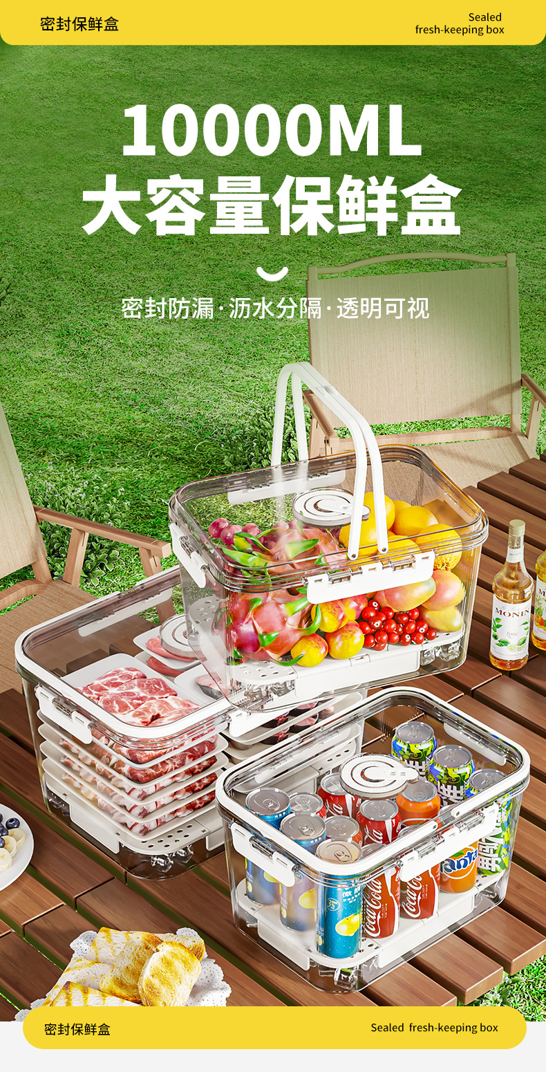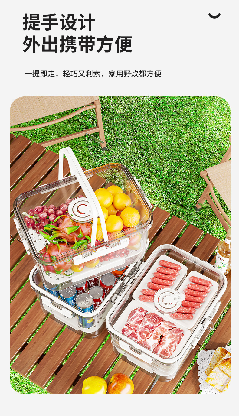 [小滋心选]【活动价 ¥35.9~¥129.9】【露营必备🍃】便携保鲜盒🔥超大容量+冰袋赠送,便携式保鲜盒 可手提露营家用冷藏水果便当 ,密封食品级户外收纳盒子