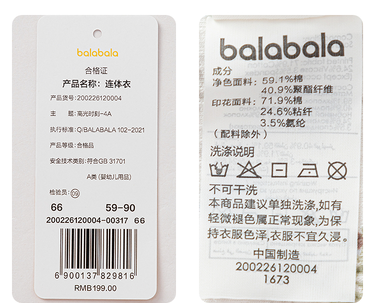 【商场同款】巴拉巴拉宝宝连体衣婴儿抱衣哈衣女童2026新款假两件