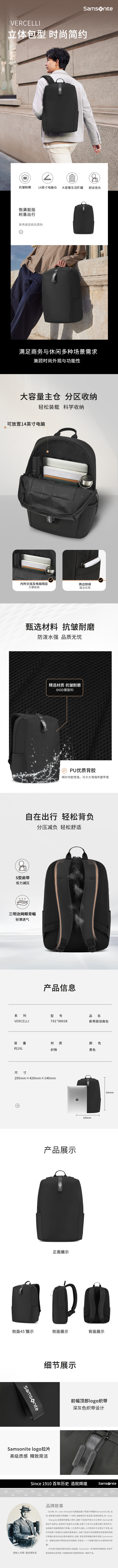 [新秀丽]双肩包-黑色(29×41.5×14cm)