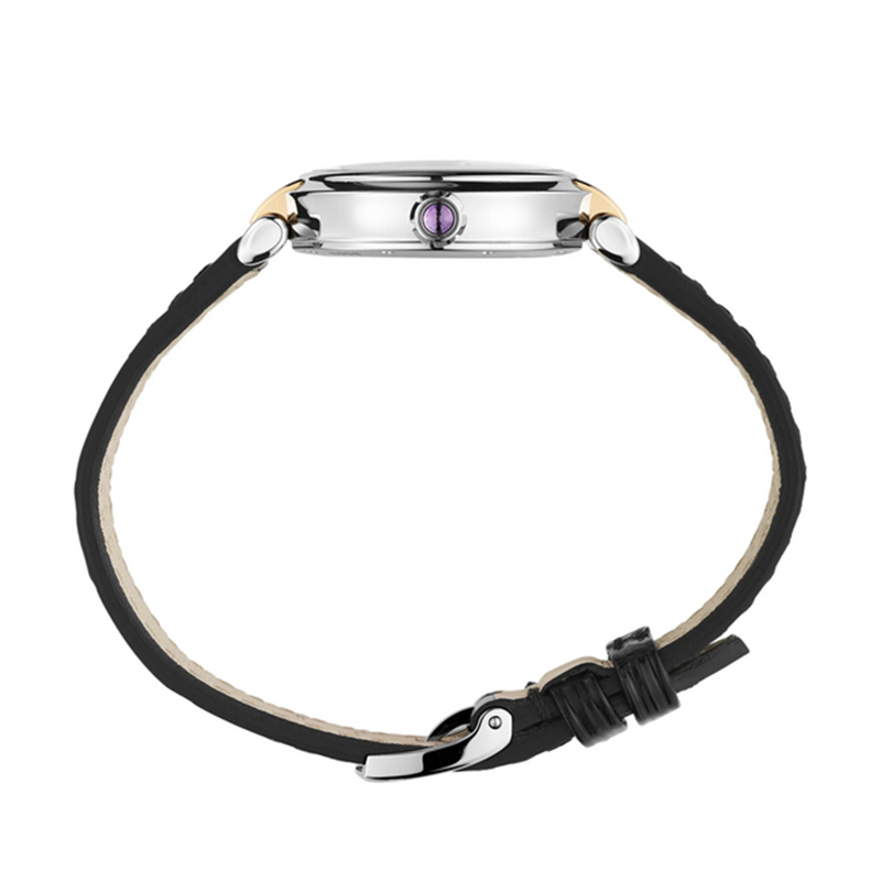 镜面材质 | 蓝宝石水晶玻璃 | 表盘 | 精钢 18K玫瑰金表壳 银色与珍珠母贝中心表盘 剑形镂空表针、罗马数字刻度、莲花形表冠 背透 |