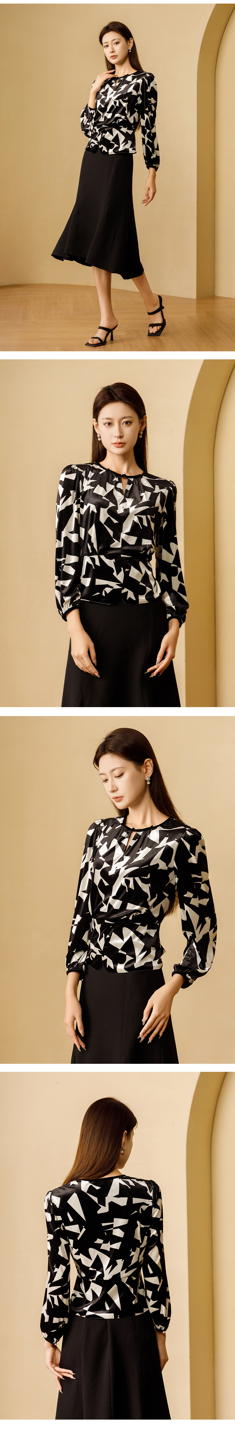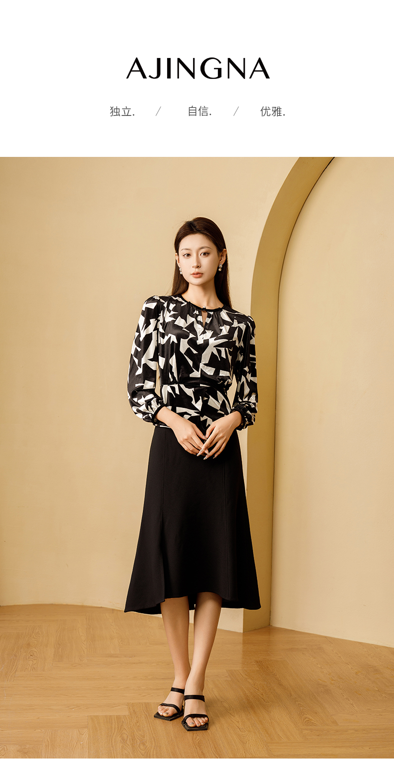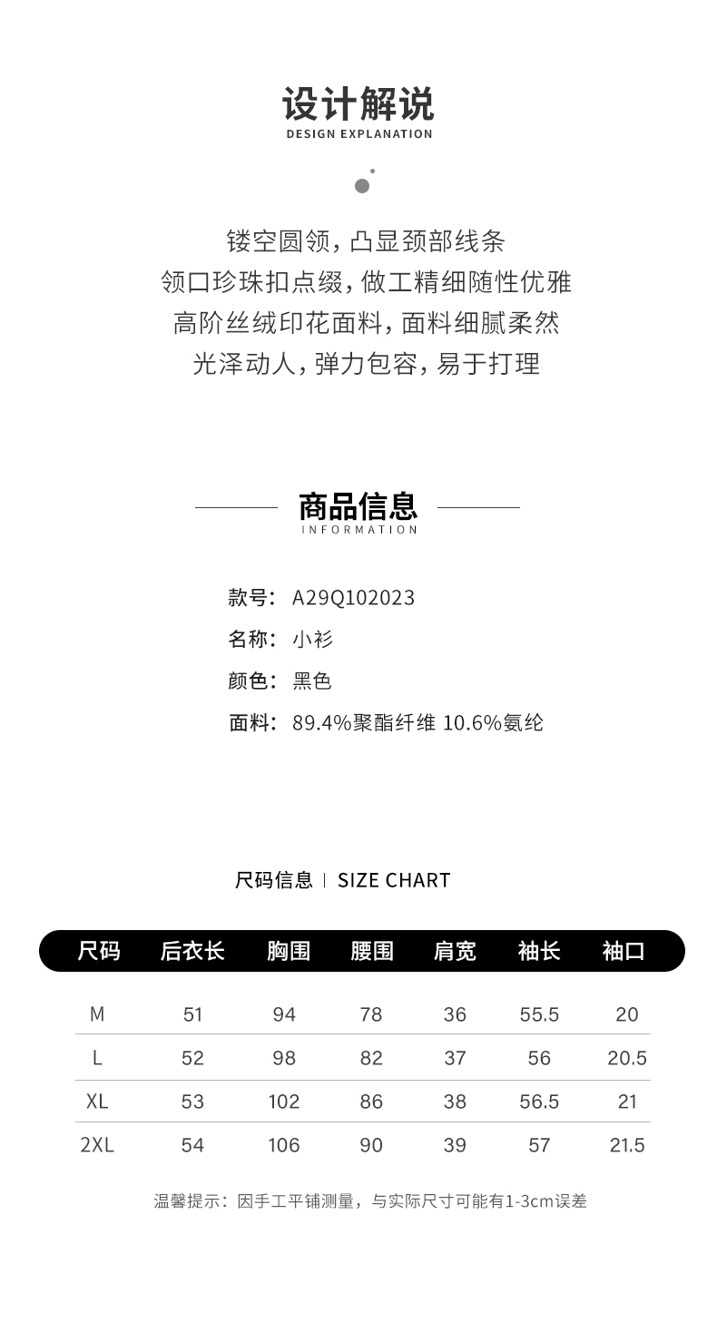 【商场同款】阿菁娜2024秋季新款镂空圆领珍珠扣小衫A29Q102023