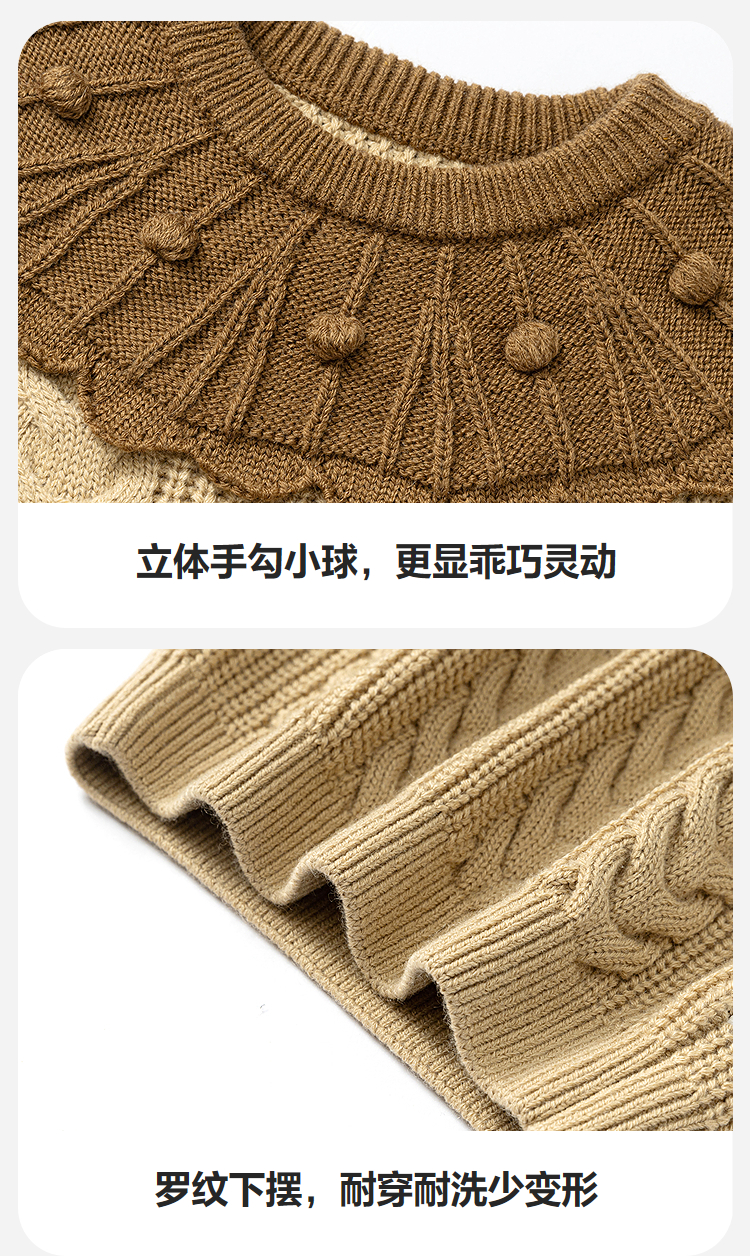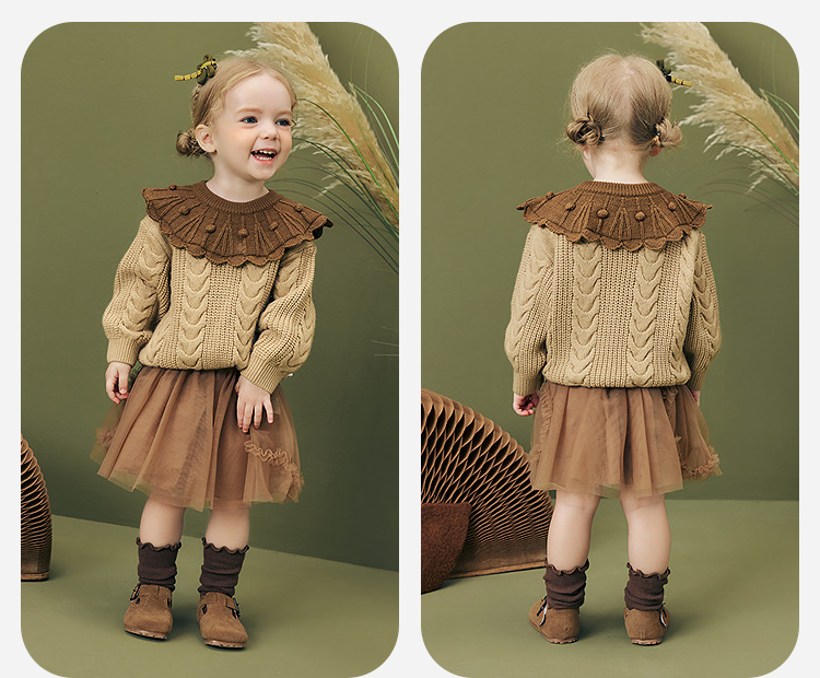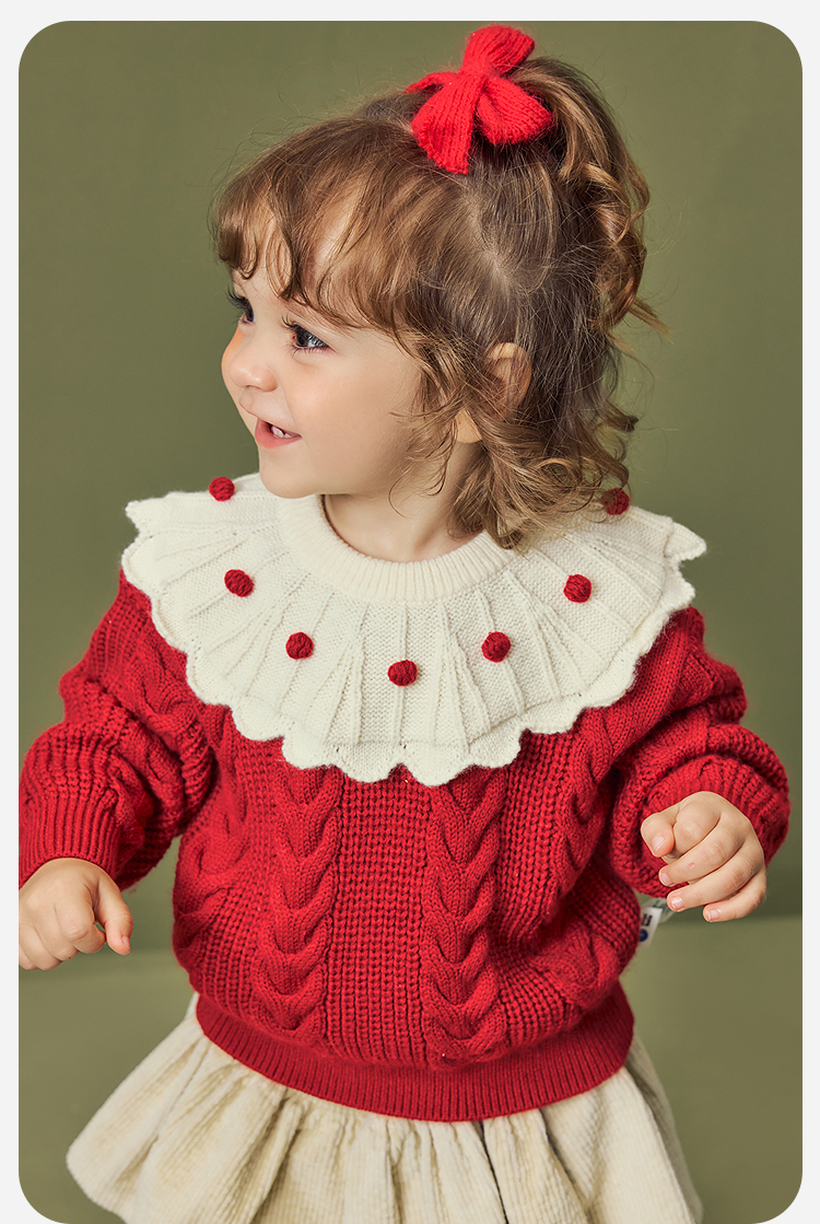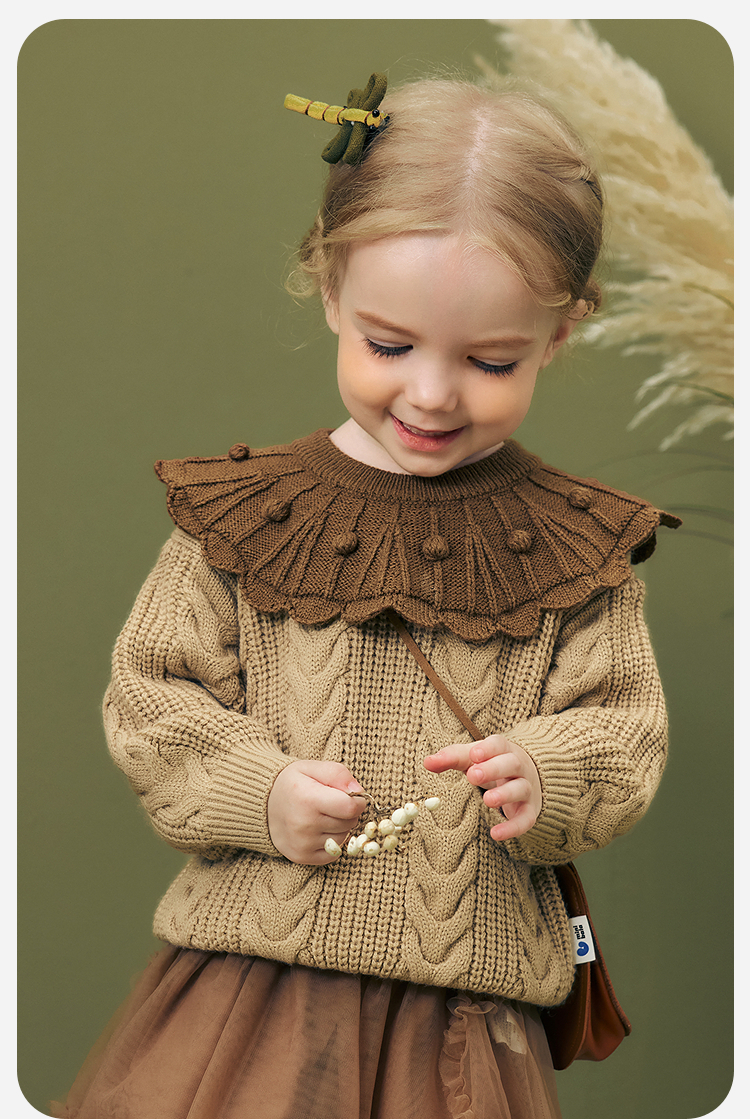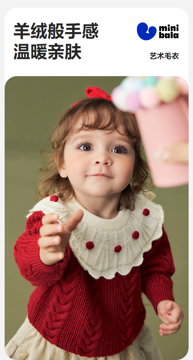 迷你巴拉女童宝宝毛衣柔软亲肤甜美大翻领立体毛球上衣2025冬新款