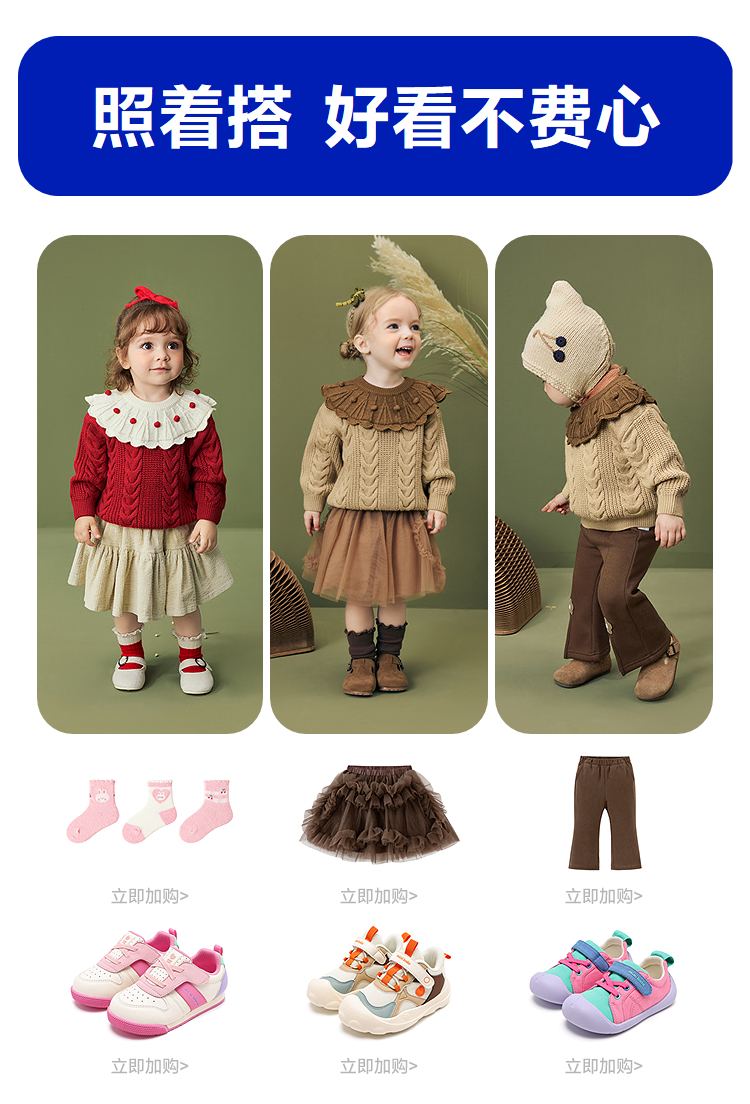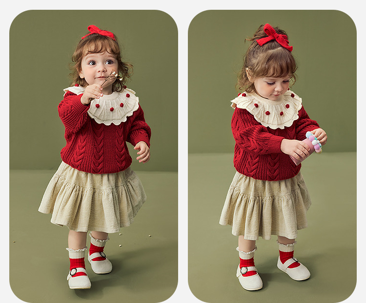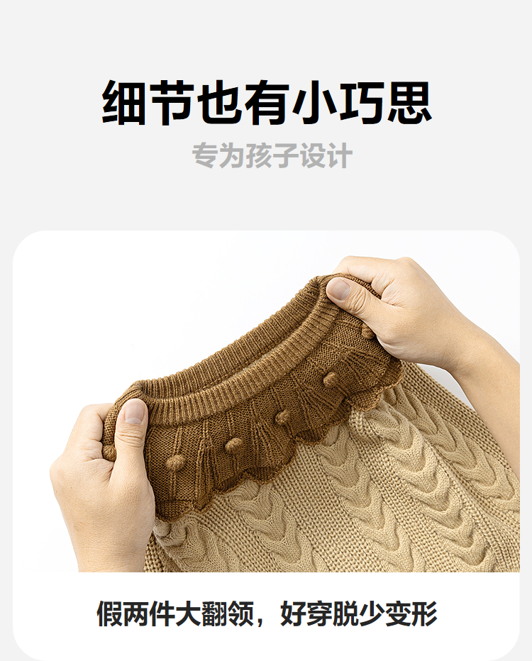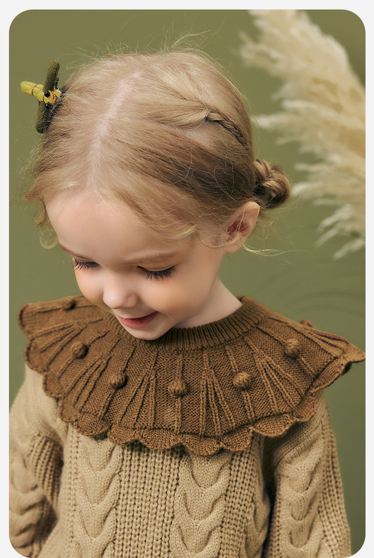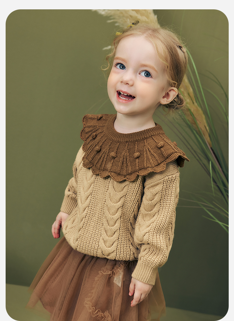 迷你巴拉女童宝宝毛衣柔软亲肤甜美大翻领立体毛球上衣2025冬新款