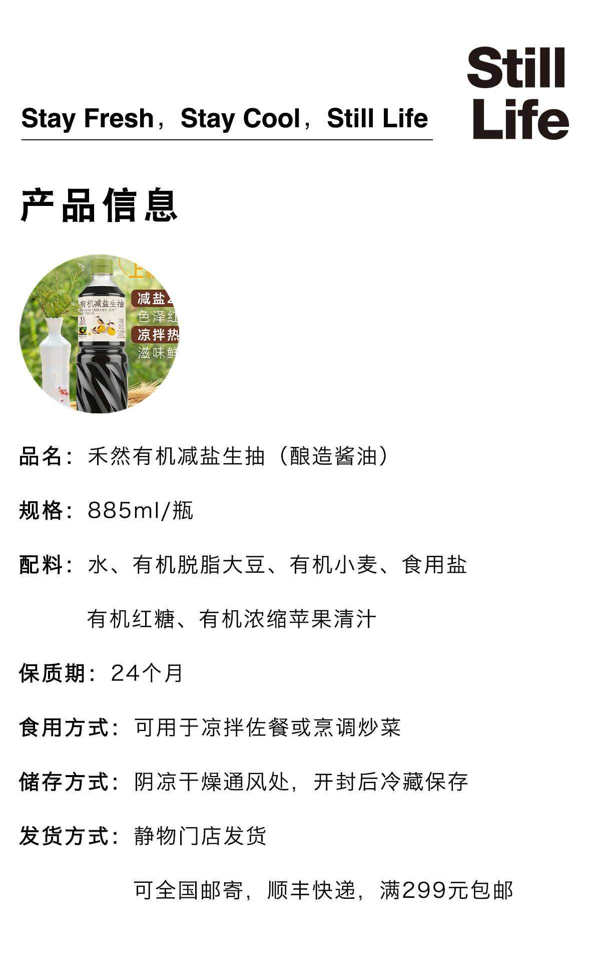 有机减盐生抽885ml|禾然有机