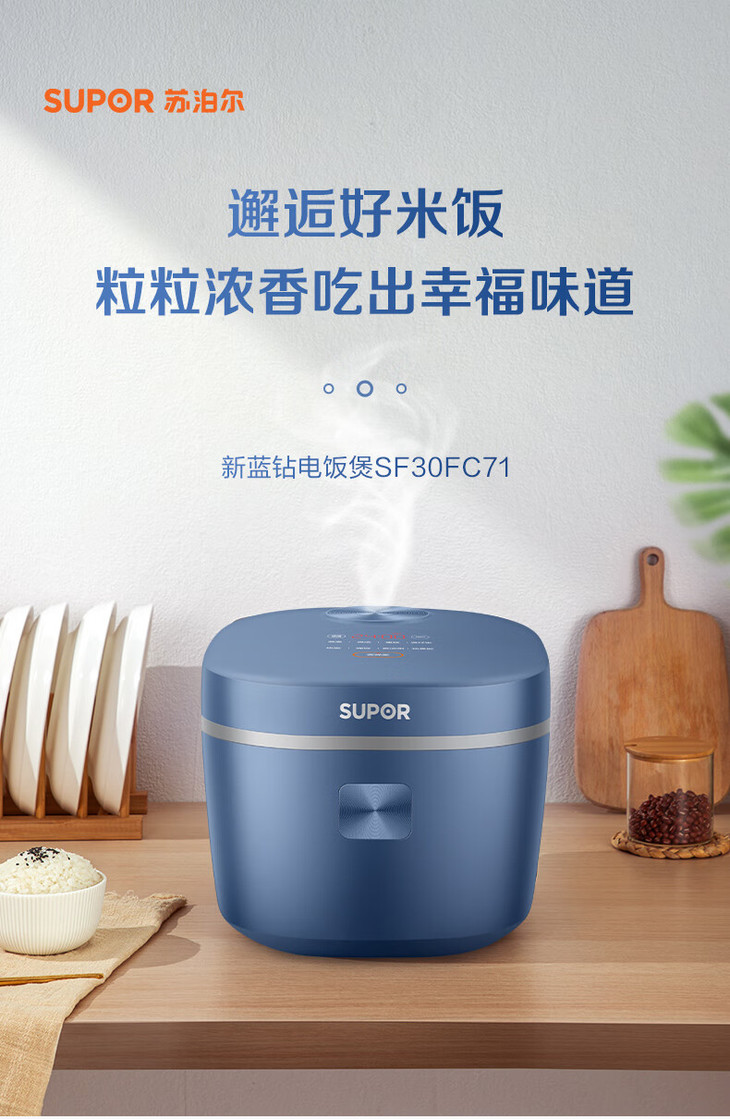 苏泊尔(510060)(SUPOR) 电饭煲SF30FC71家用3L/升小电饭煲电饭锅蓝钻不粘内胆24小智能预约香弹饭底盘加热
