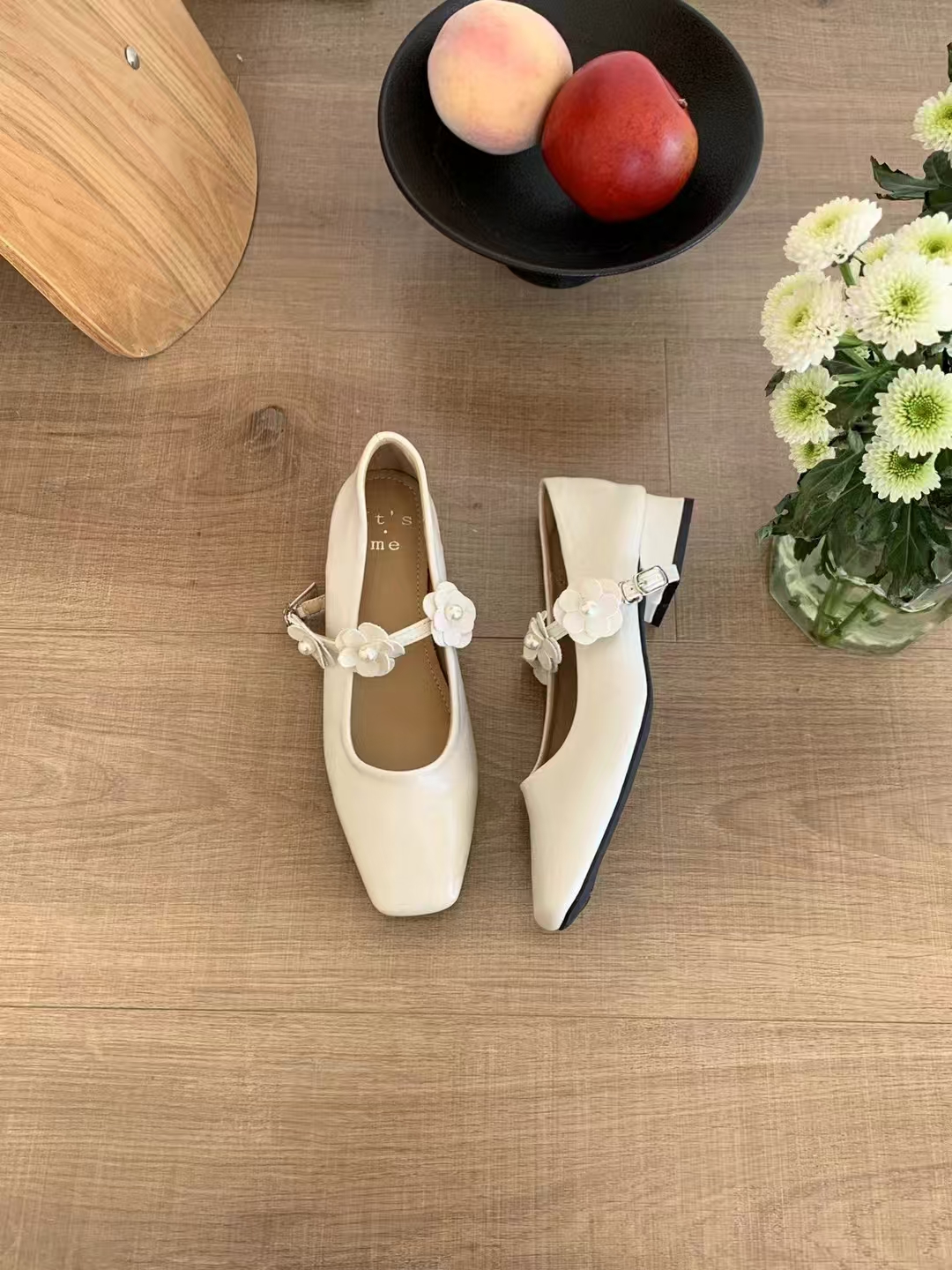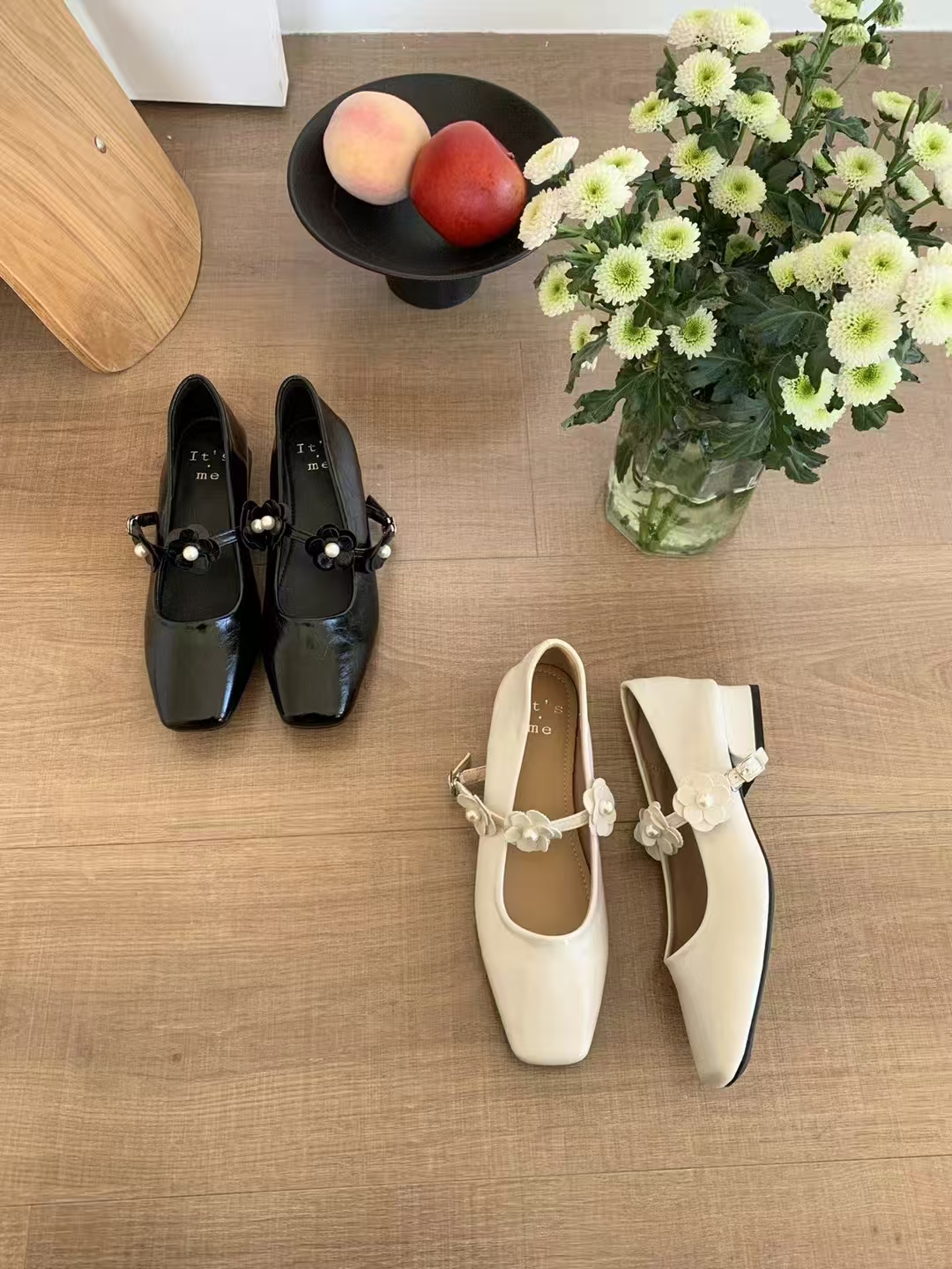 【GZ】无忧购法式珍珠花朵一字带气质浅口复古玛丽珍单鞋3827-9(截单后3-5天发货)