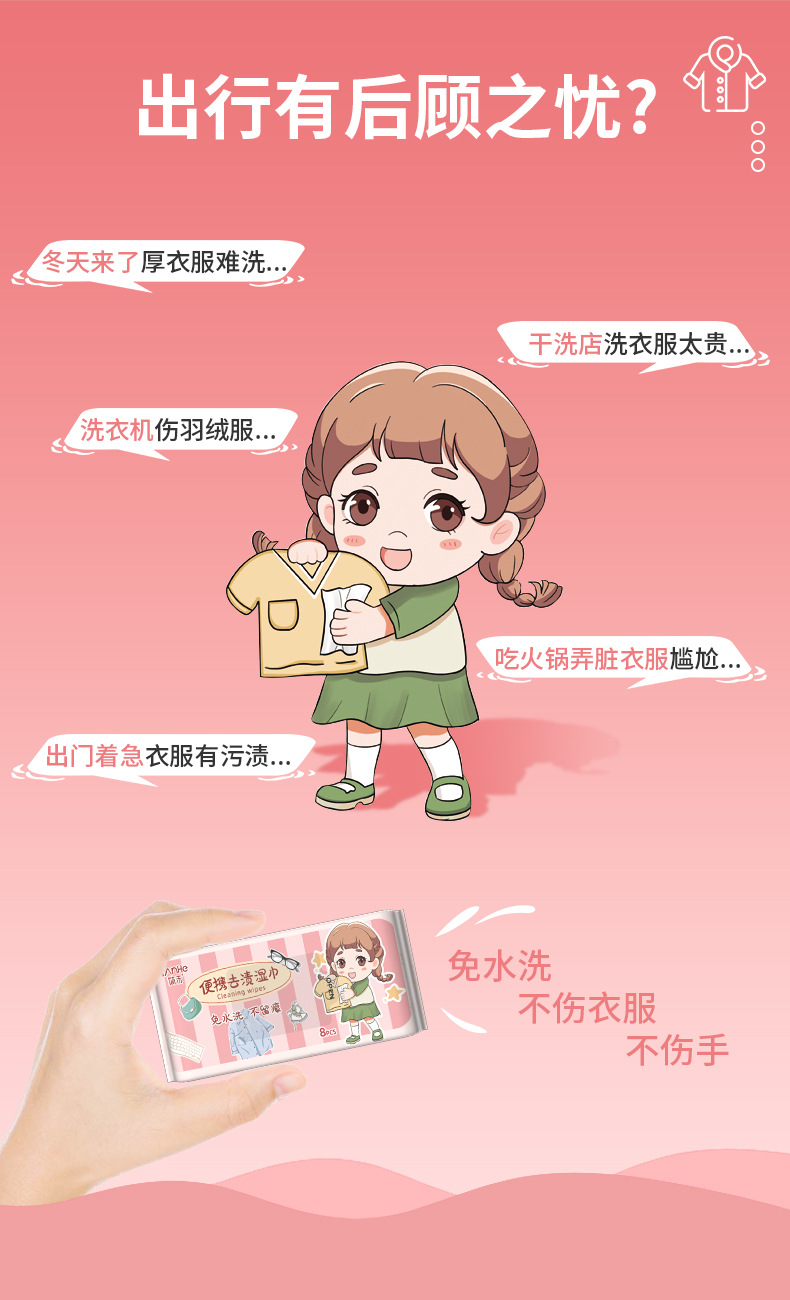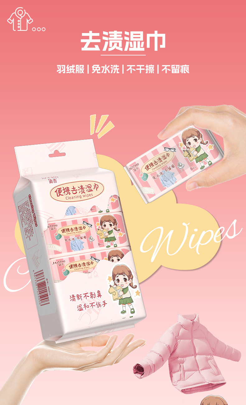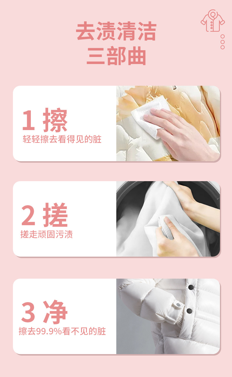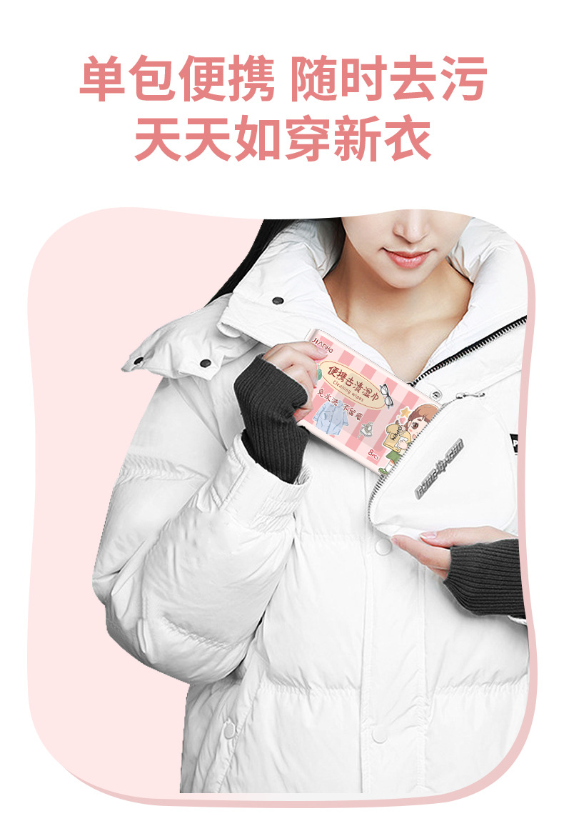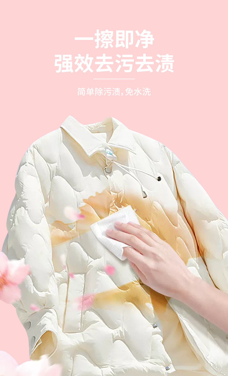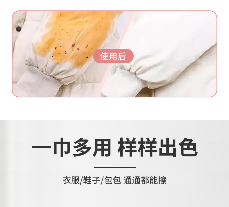 【免水洗快速洁衣!羽绒服清洁湿巾】去污去油免水洗一擦即净不留痕便携式衣物去渍便携湿巾纸不伤衣