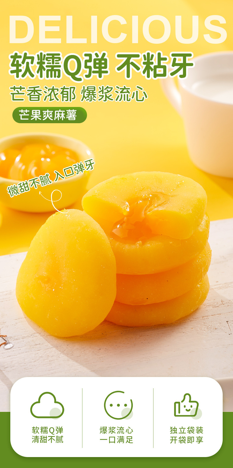 【芒香浓郁爆浆流心!芒果爽麻薯】细腻软糯,好吃不黏牙,糯米糍粑香浓醇,好吃无负担。外皮Q弹糯米内馅。夹心糕点休闲零食,整箱糯米糍粑爆浆夹心糕点好吃的下午茶点心休闲零食品健康