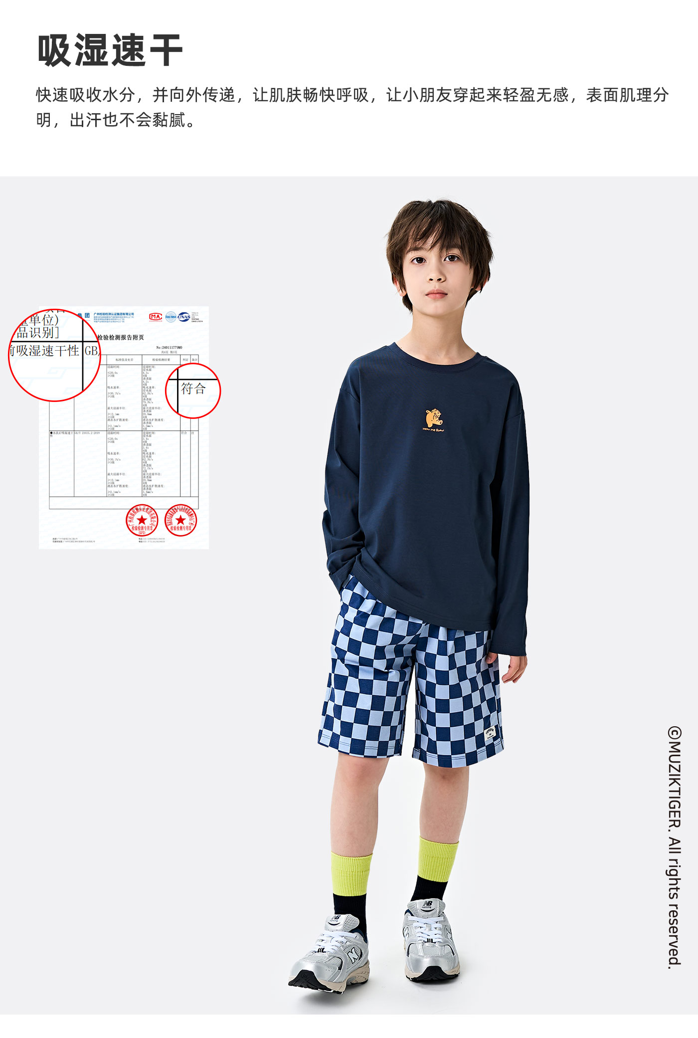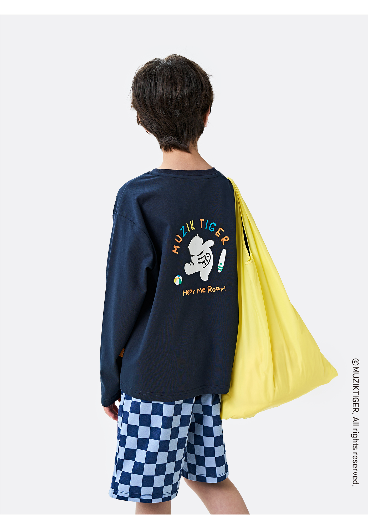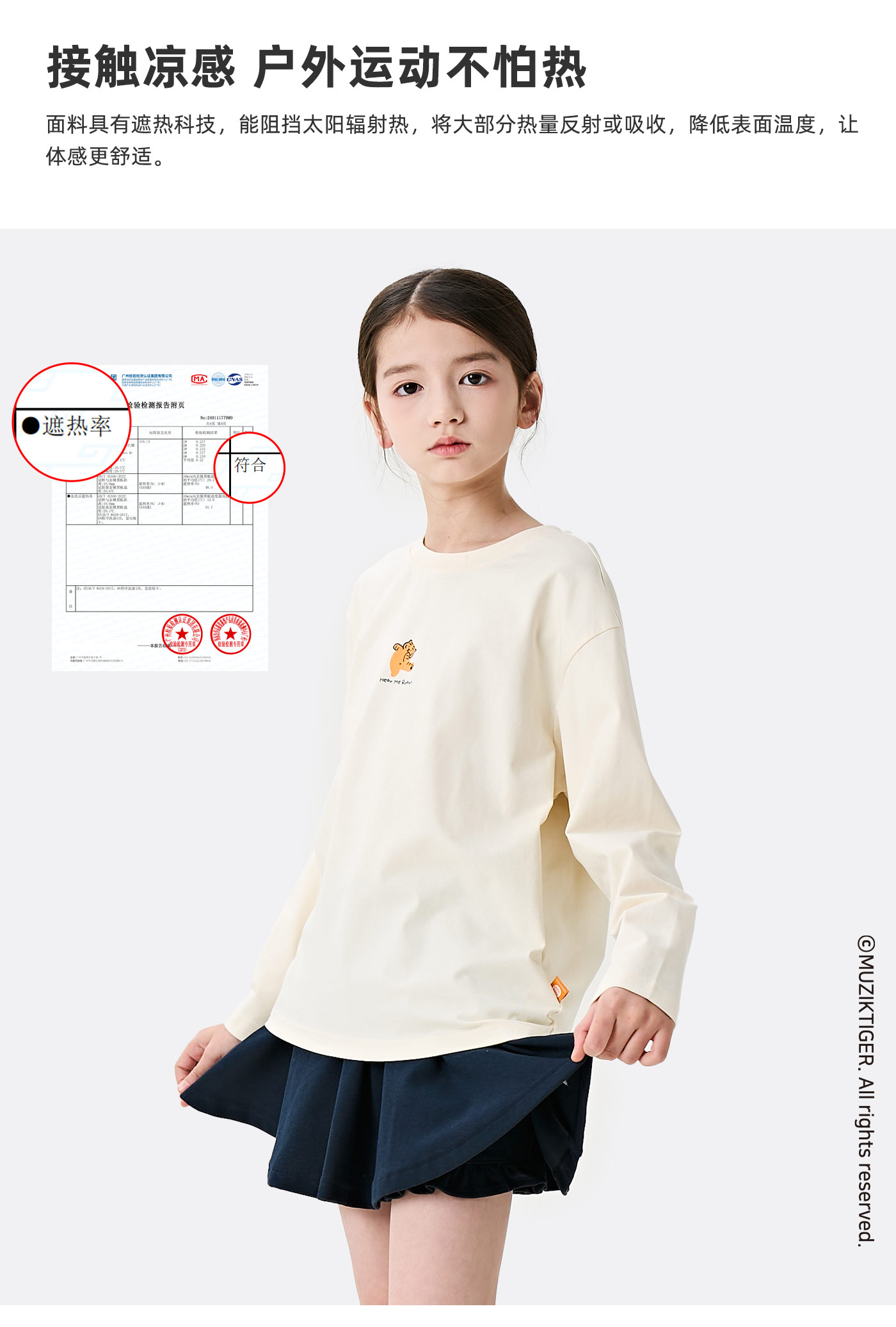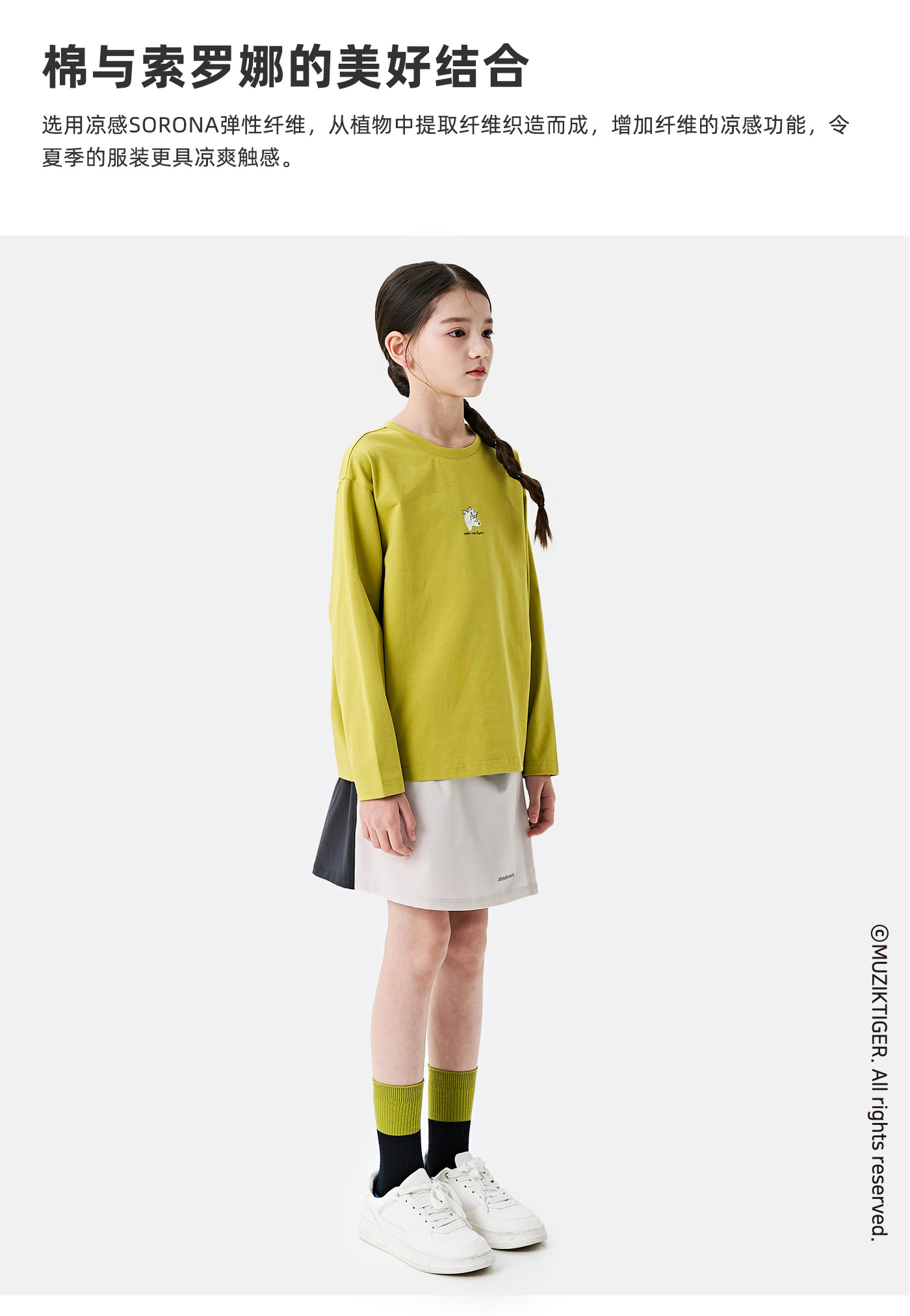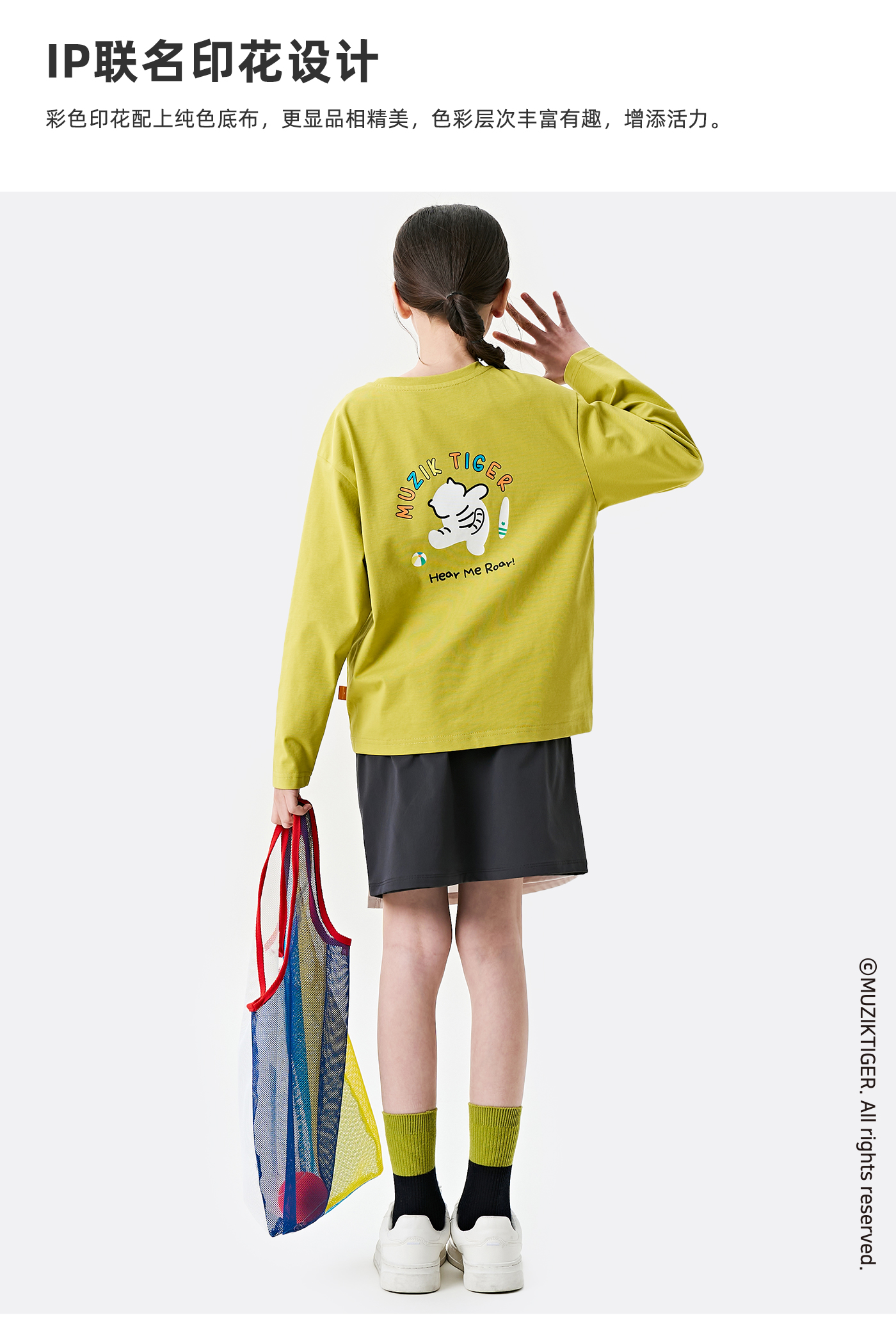 【凉感索罗娜IP联名款】棉叔叔儿童老虎印花长袖T恤363101015 | 柔软有型不易变形、虎虎印花童趣十足、色彩明快、运动活力与可爱风格
