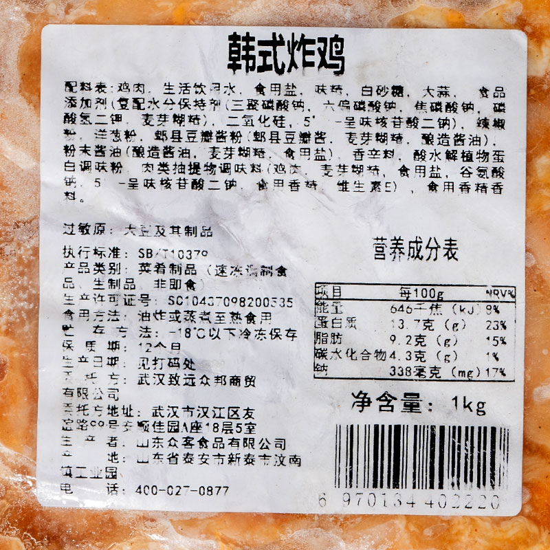 爱唐扬韩式炸鸡1kg 鸡腿肉腌制去骨腿肉未裹粉油炸小吃冷冻半成品商用