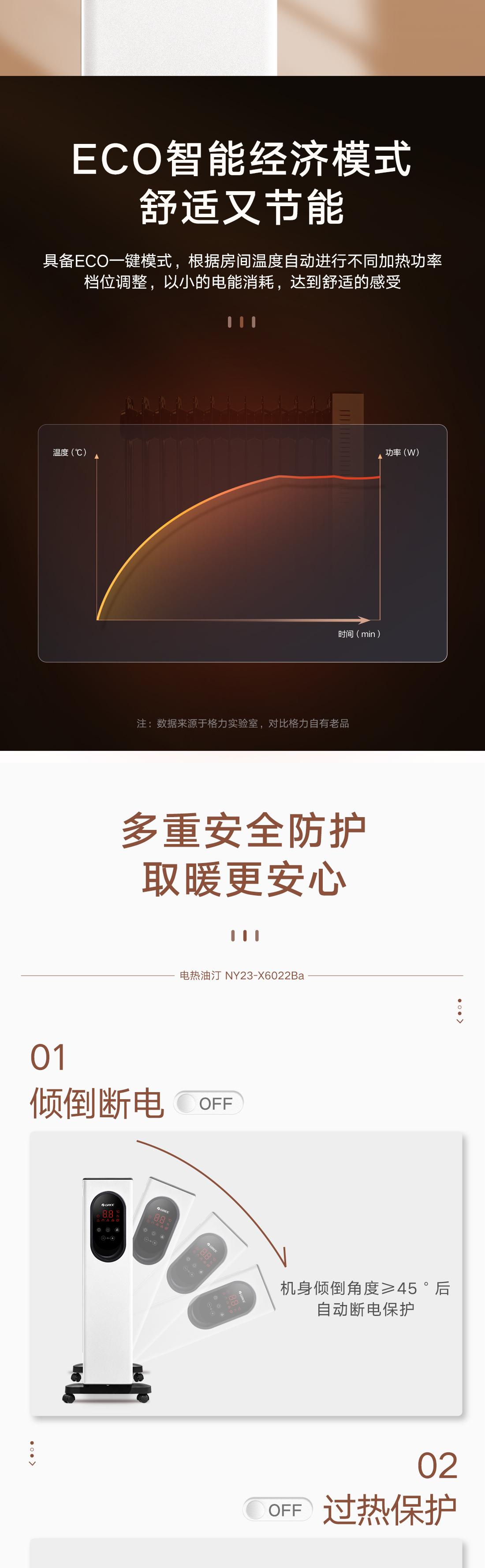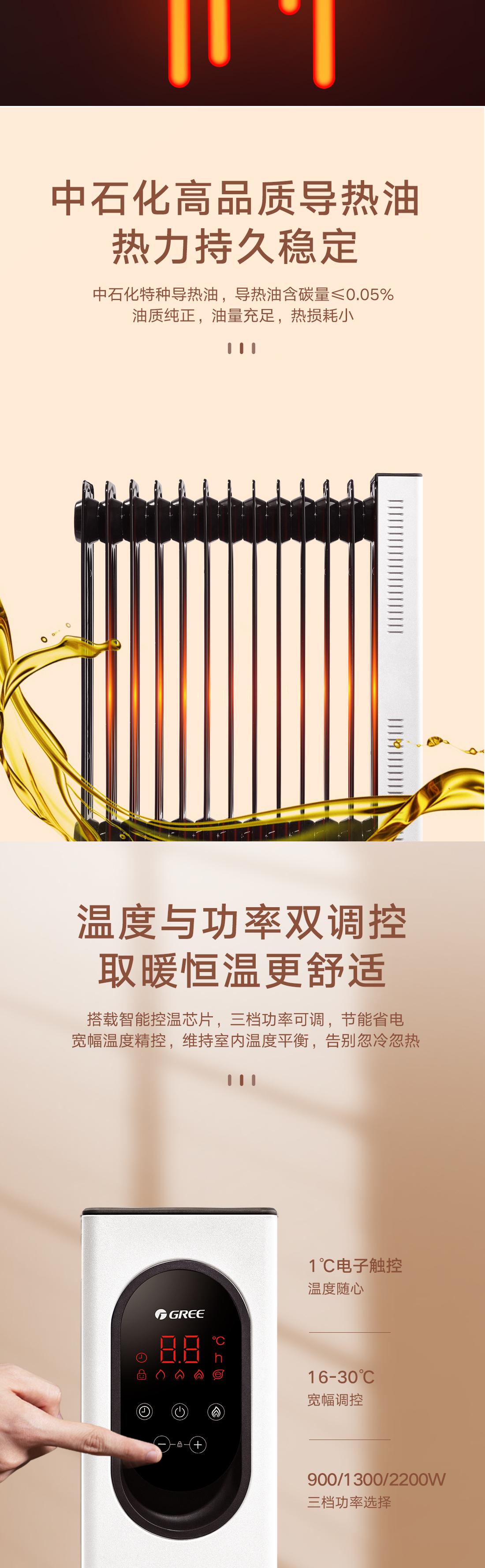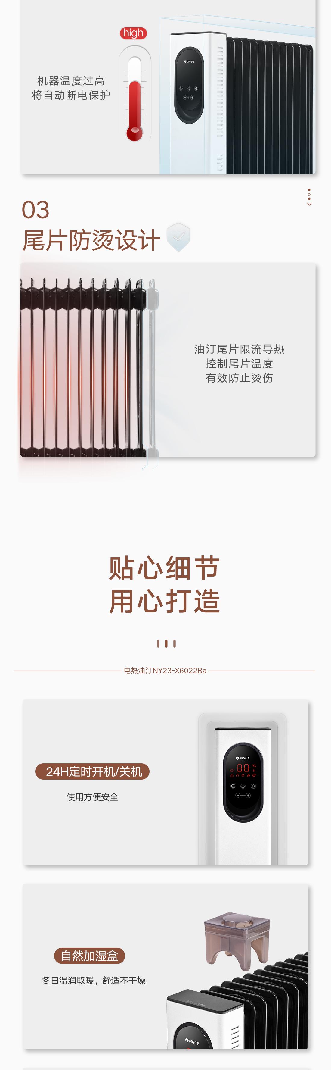 格力电暖器 电热油汀 聚能速热 全屋升温 NY23-X6022Ba 黑+白色