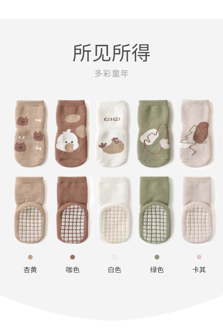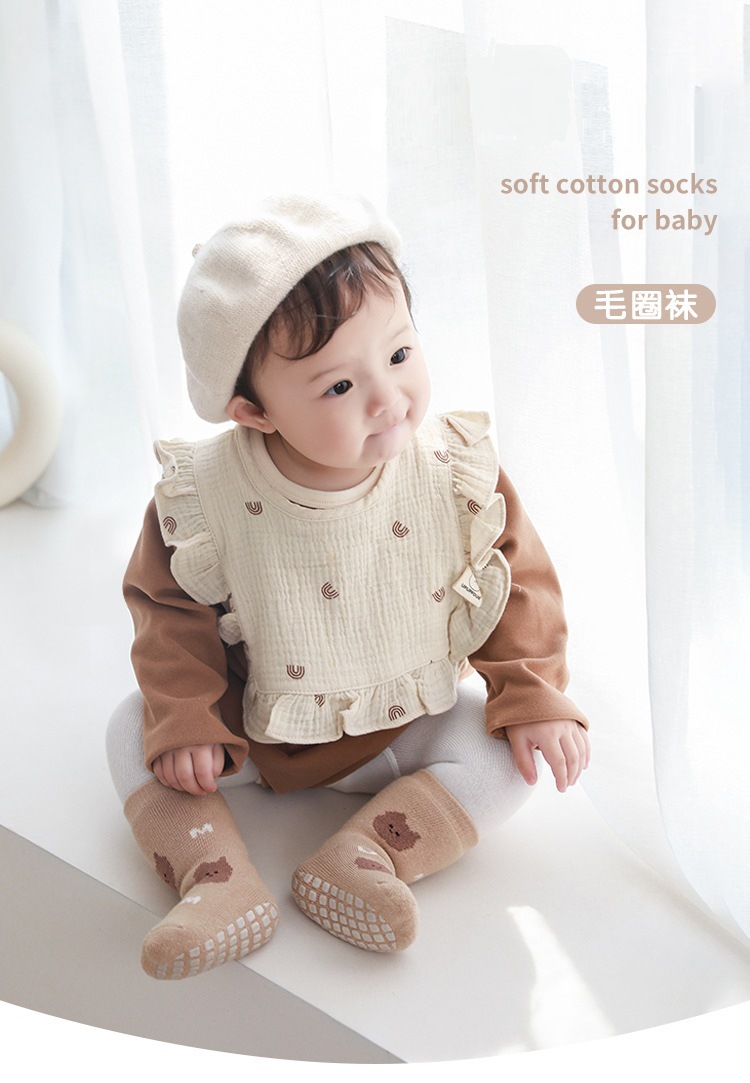婴儿地板袜秋冬季室内防滑隔凉宝宝学步袜卡通男女童中筒棉袜A类