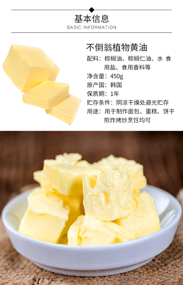 韩国进口不倒翁黄油450g 增香提香植物性黄油块状蛋糕烹饪烘焙黄油