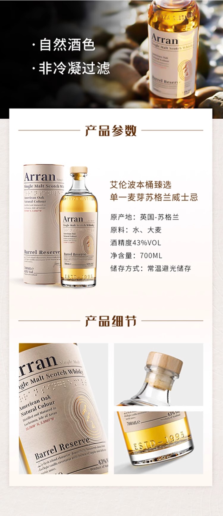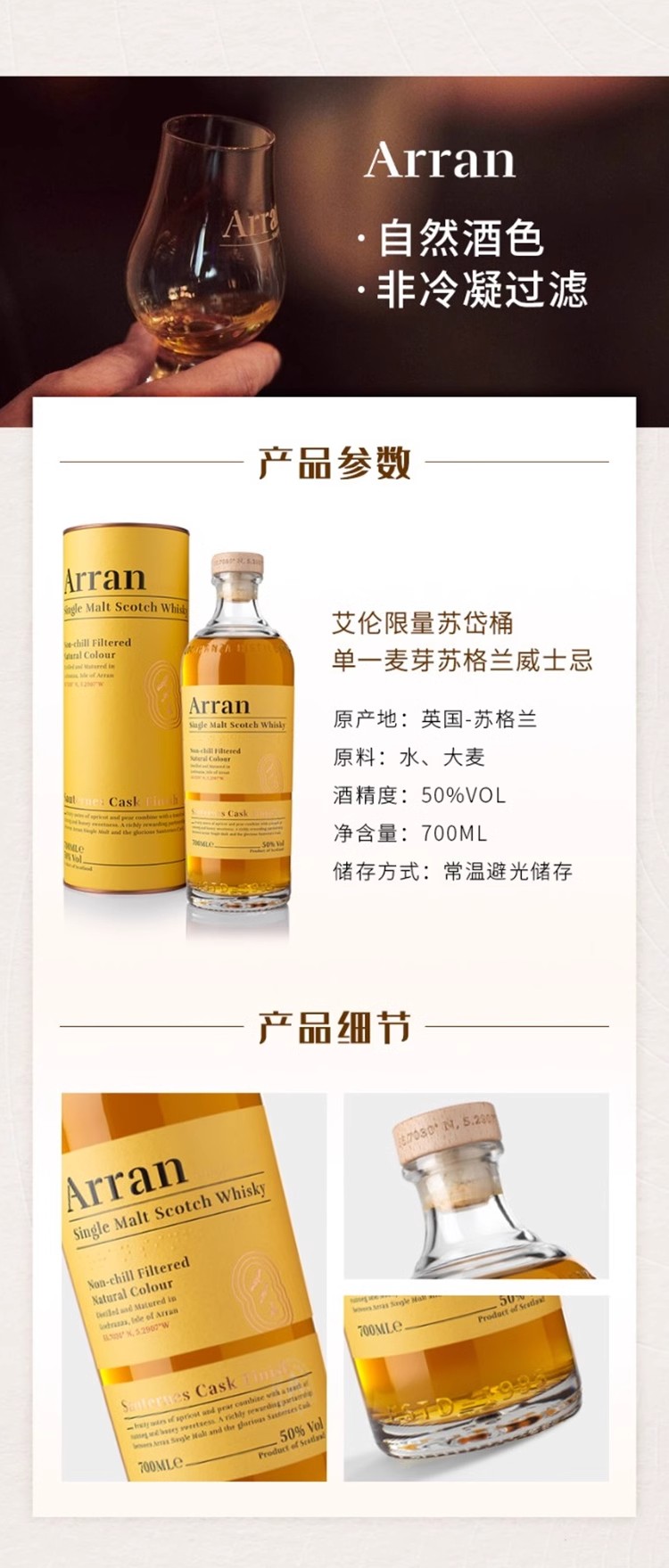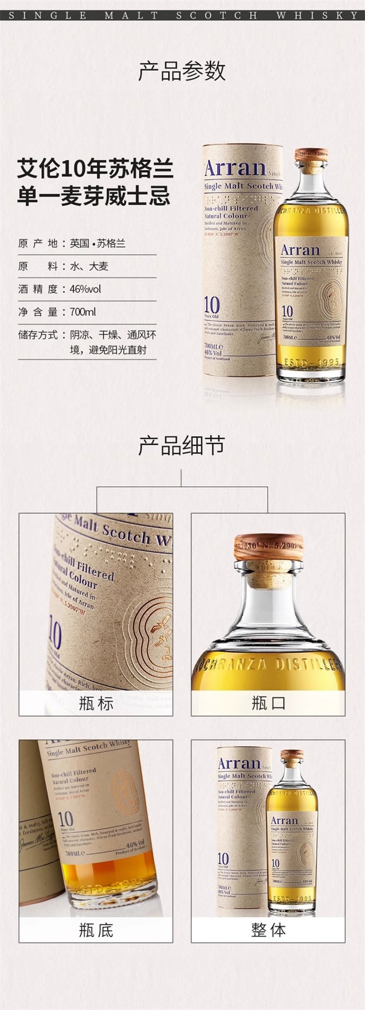 Arran 艾伦10年威士忌4分之1雪莉桶红酒苏玳波本桶苏格兰单一麦芽