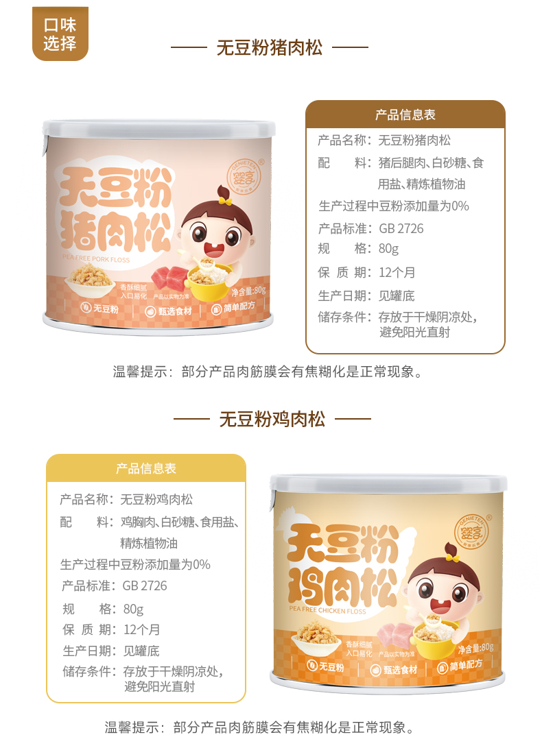 婴享无豆粉肉松80g无米粉儿童营养猪肉酥宝宝辅食肉绒拌饭料