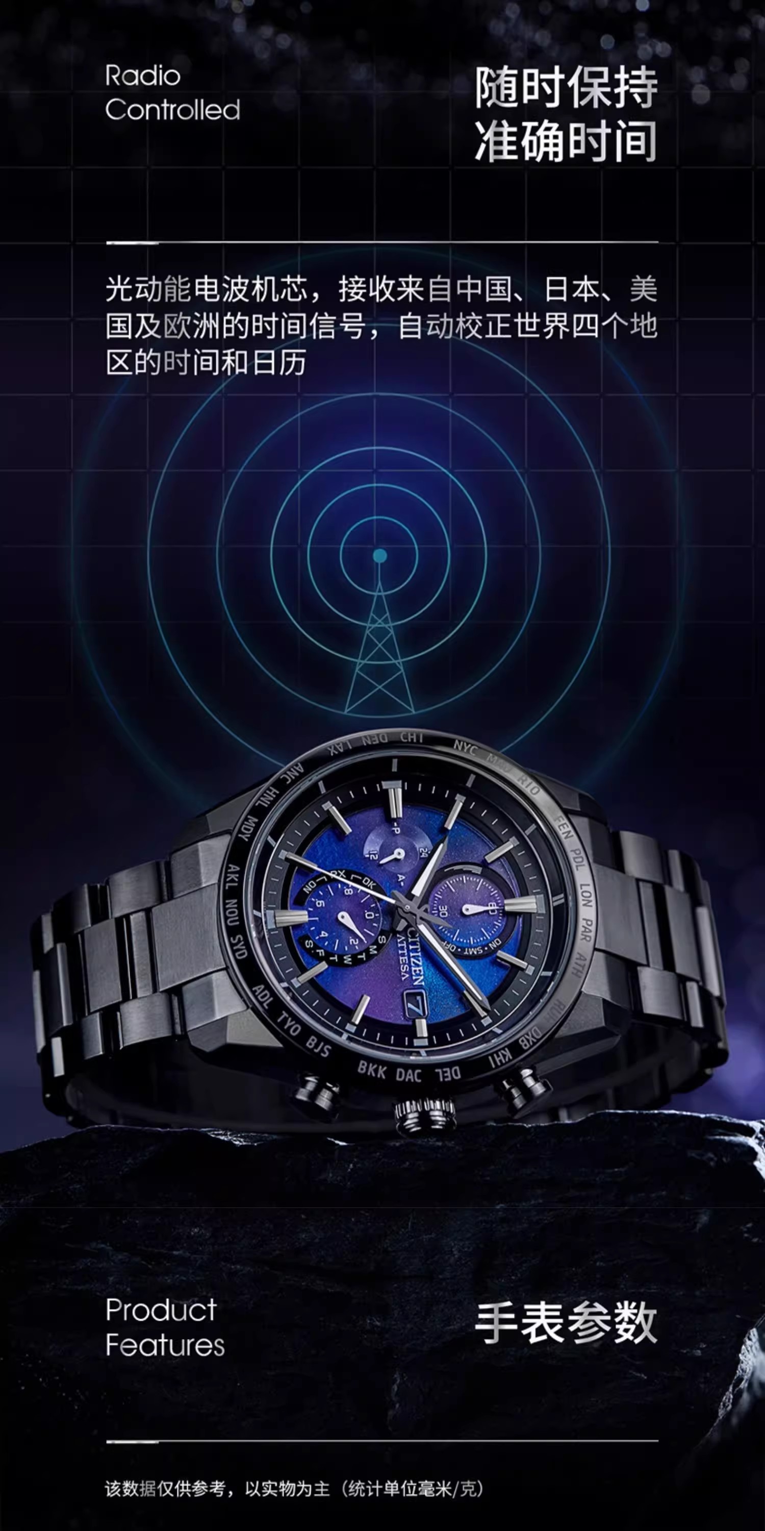 西铁城/CITIZEN舒博钛商务ATTESA系列电波男士手表AT8285-68Z