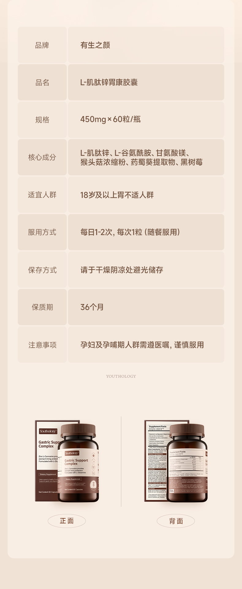Youthology L-肌肽锌胶囊 60粒/瓶