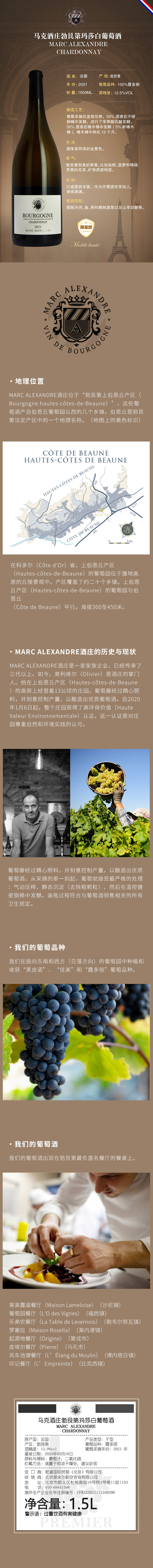 法国 勃艮第 马克酒庄 玛莎白葡萄酒 1500ml*6瓶整箱装