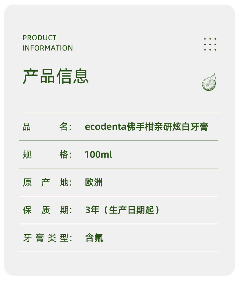ECODENTA伊口达 佛手柑亲研炫白牙膏100ml