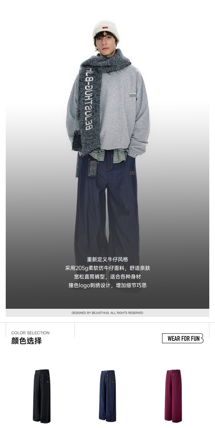 BJHG不计后果仿牛仔裤子男款春季2026新款潮柔软宽松高街直筒裤女
