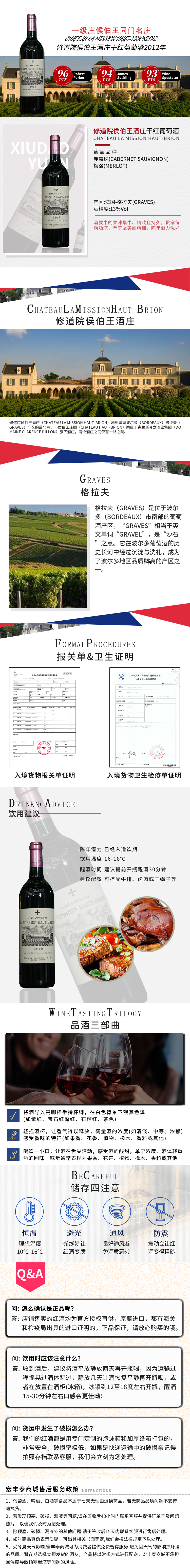 法国-修道院侯伯王酒庄干红葡萄酒2012