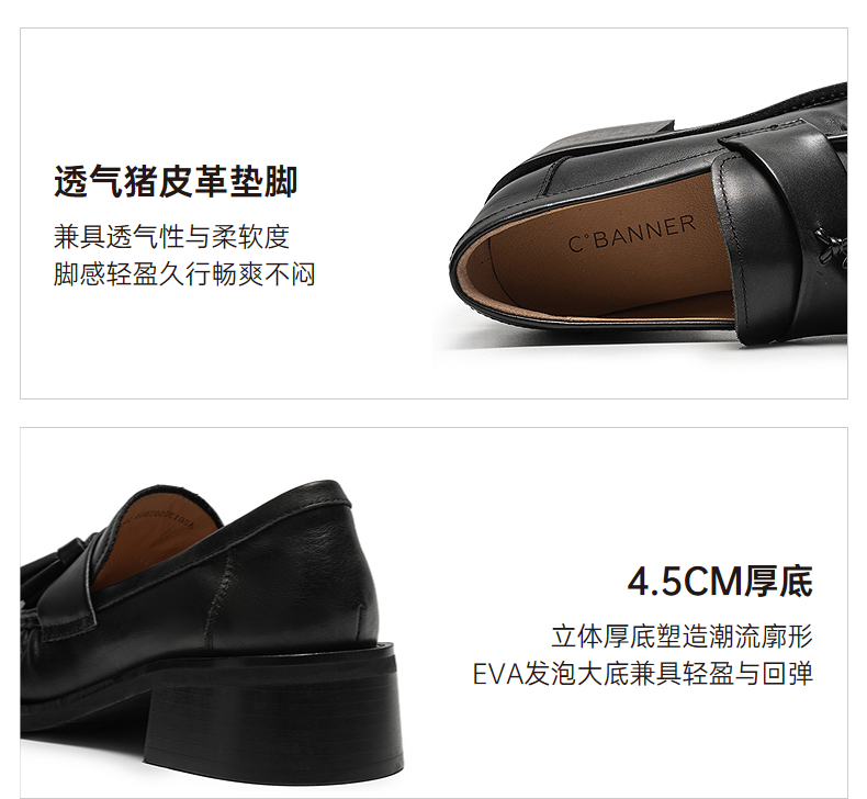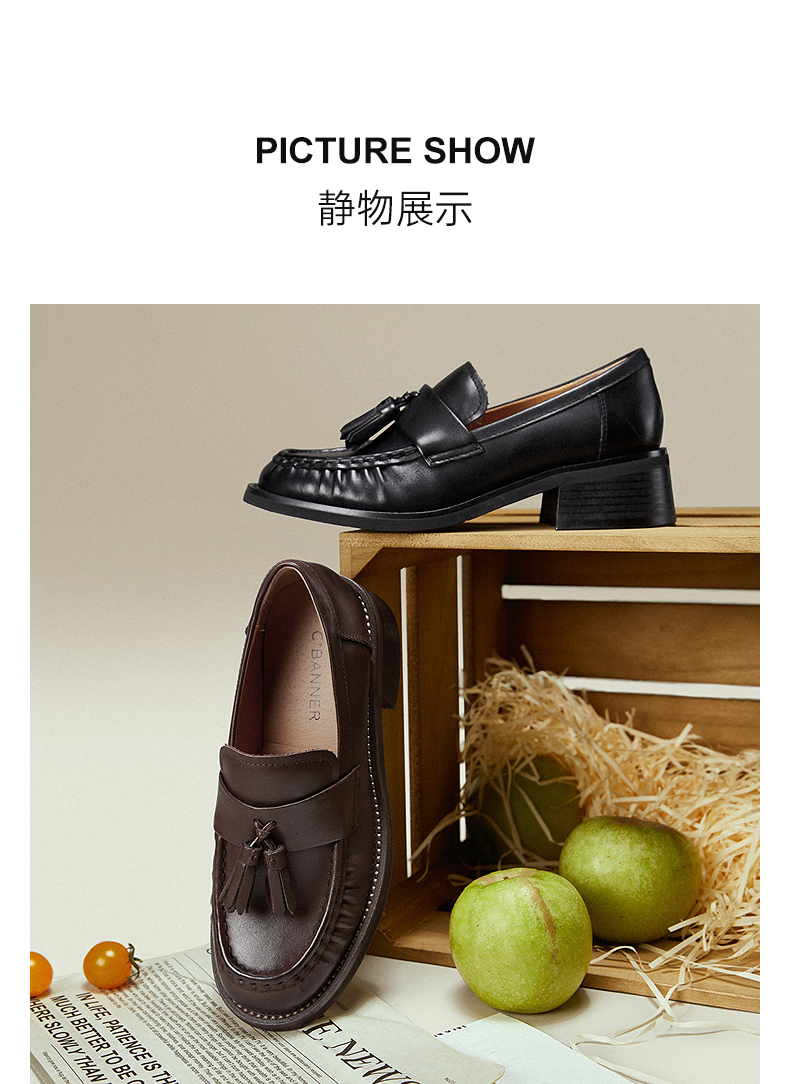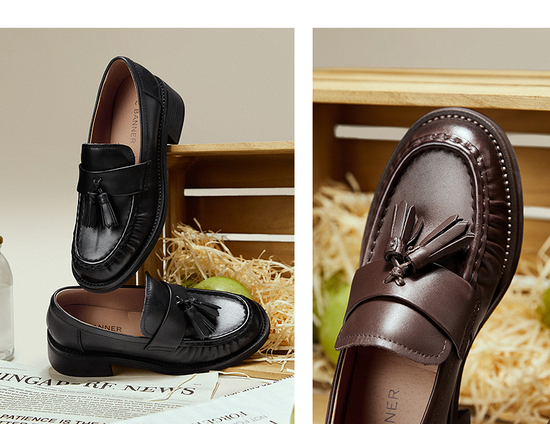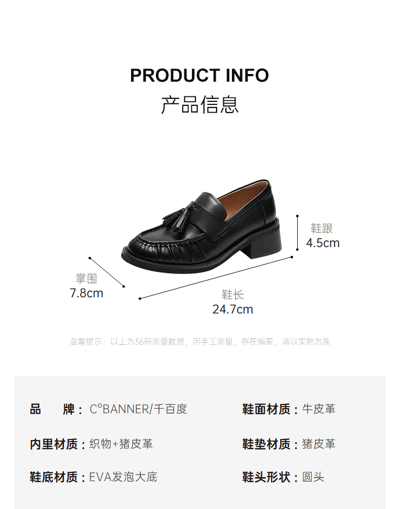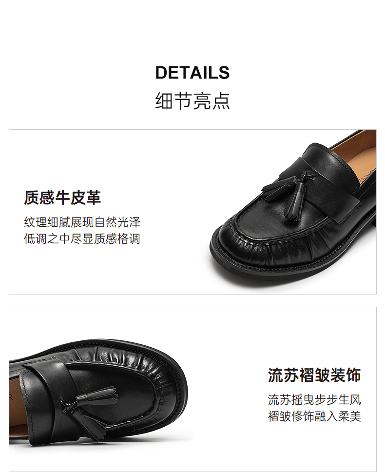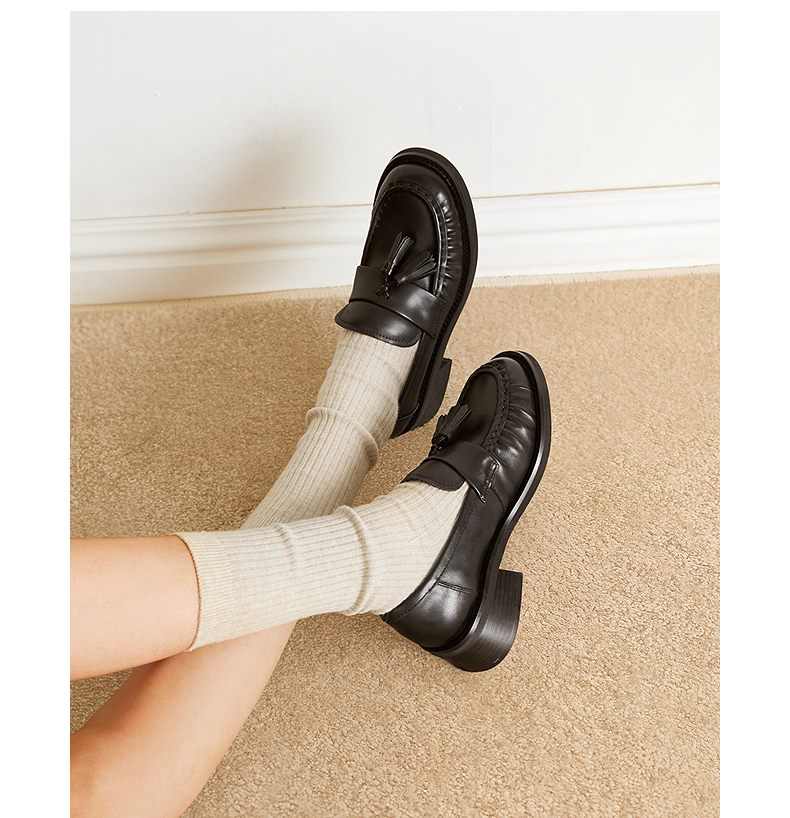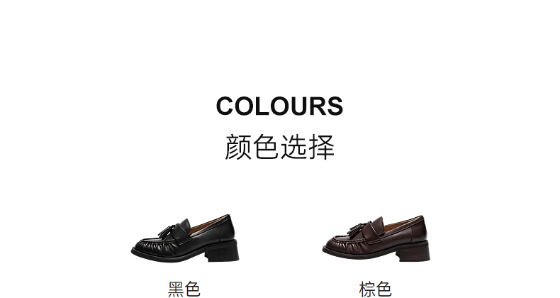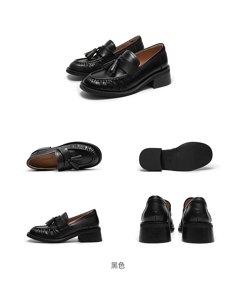 【上新】千百度流苏褶皱中跟乐福鞋女2026春季新款厚底牛皮深口单鞋小皮鞋A26133507