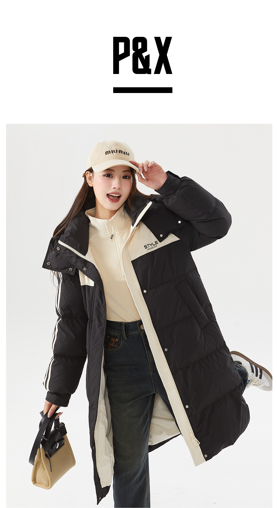P&X设计师女装冬季长款休闲棉服824424277黑色