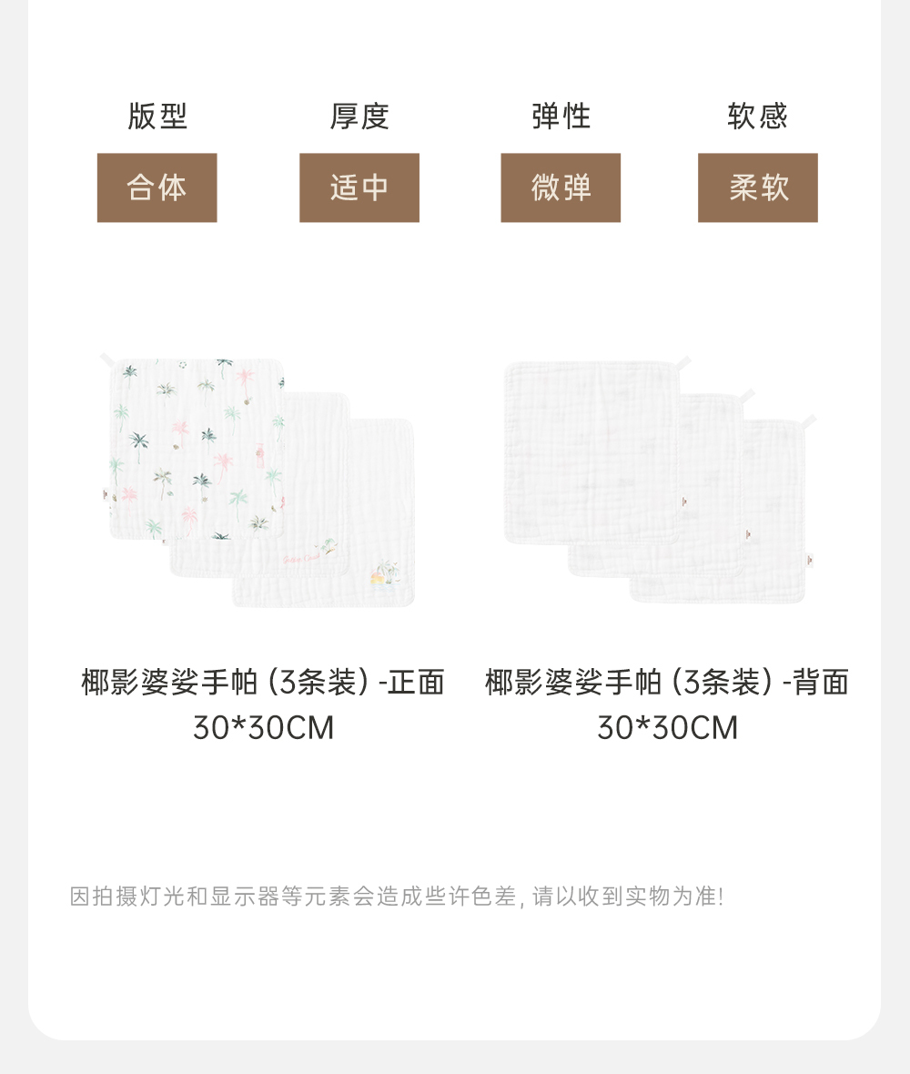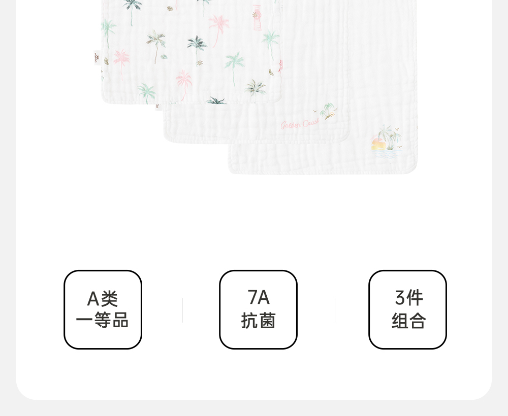 英氏儿童手帕小方巾婴幼儿可用7A抗菌纯棉毛巾3条装YMJSJ0R081A