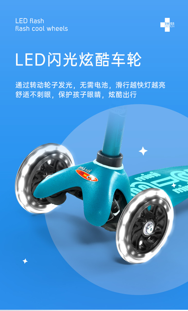瑞士M-cro迈古 | 滑板车三轮儿童溜溜车 | LED轮闪光轮 | 2-6岁 身高85-110cm
