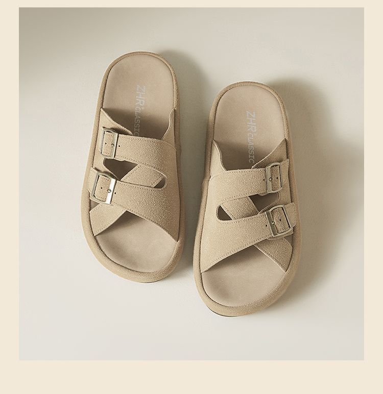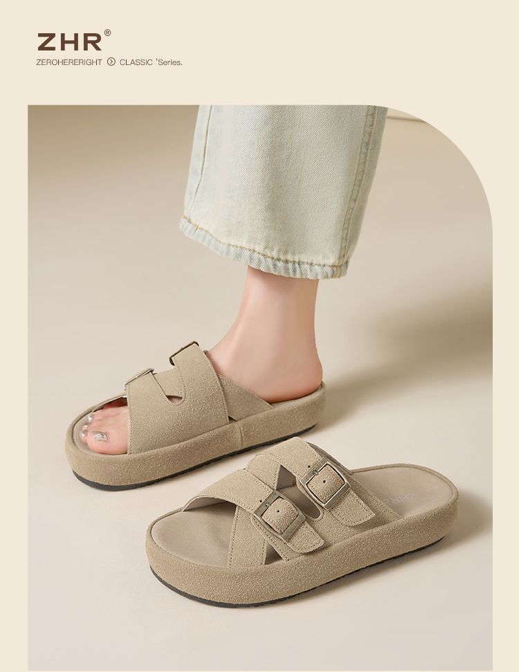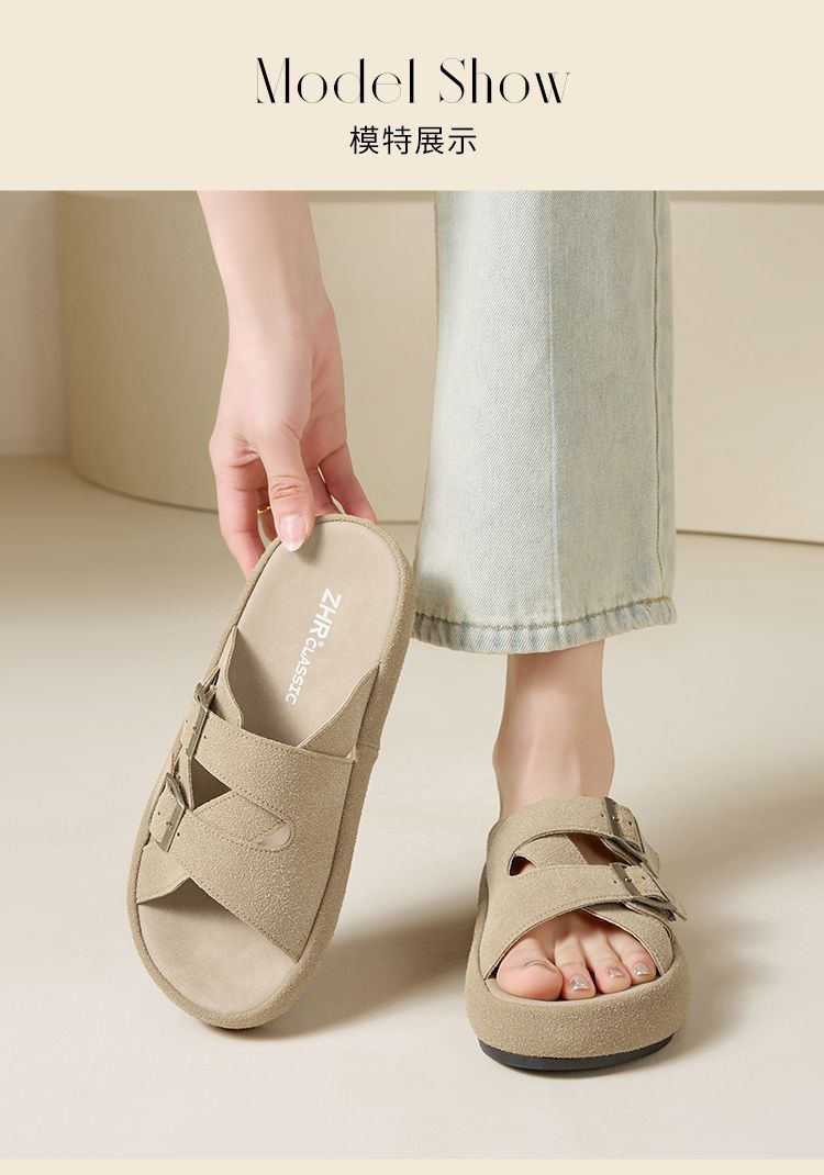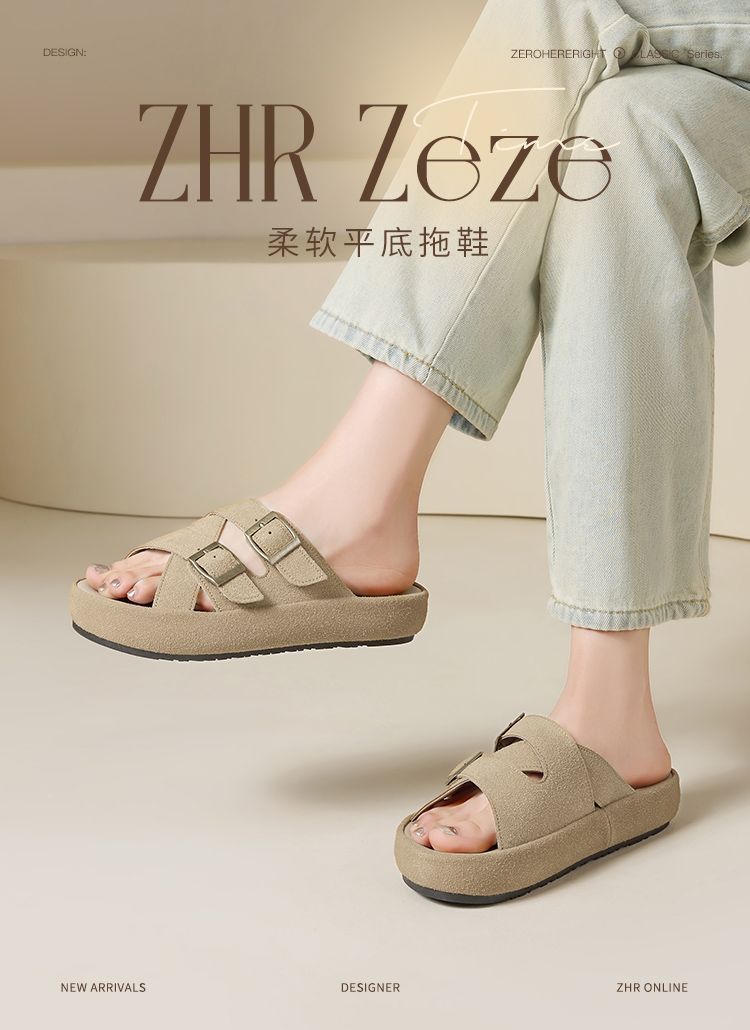 ZHR则则勃肯拖厚底拖鞋2025夏季新款外穿平底拖鞋复古半拖沙滩鞋