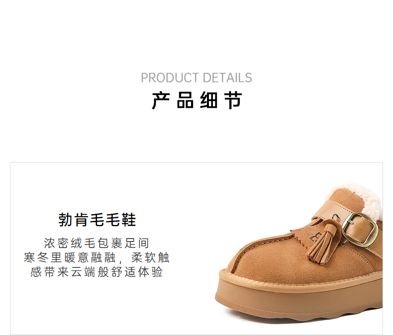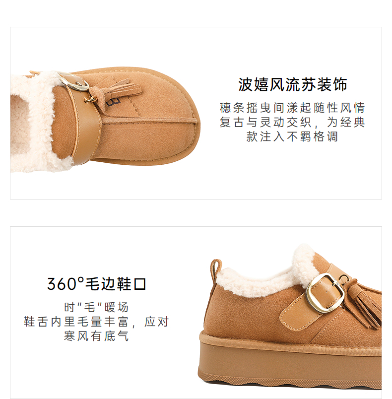 伊伴冬季厚底勃肯毛毛鞋毛边鞋口B25729007