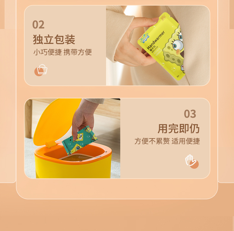 【到手4包】萱草海绵宝宝联名款自发热暖手宝/4包(单包5片)