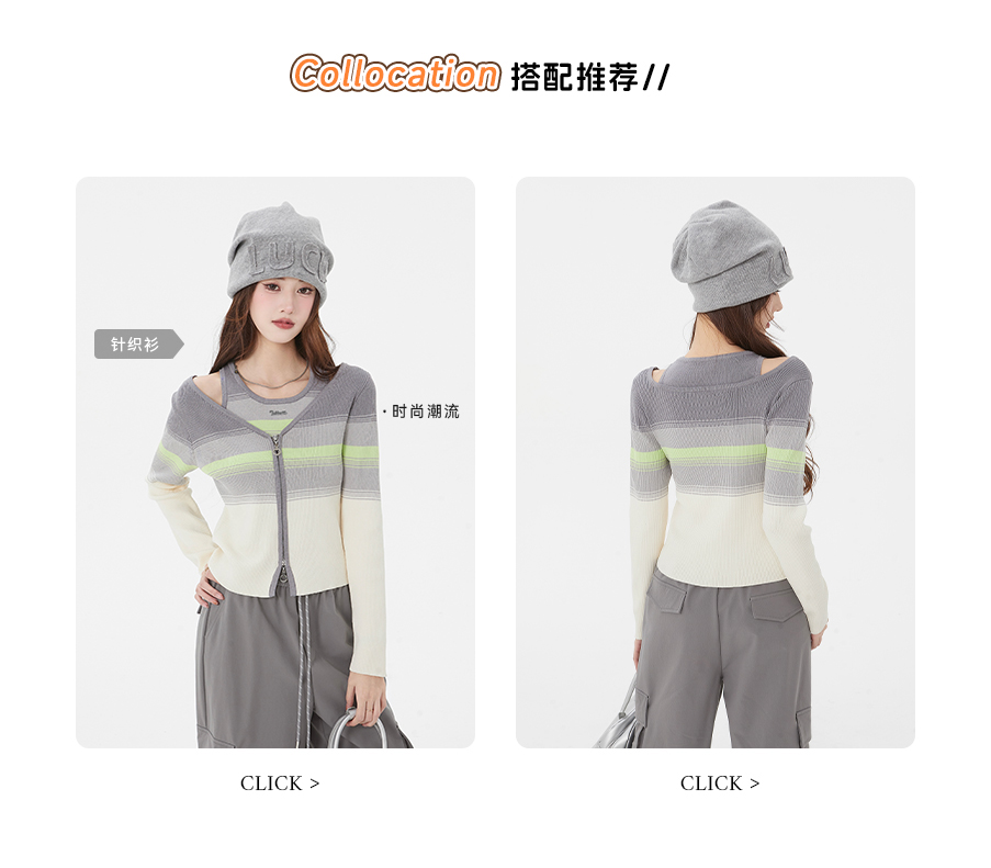 P&X设计师女装新款半拉链短款毛衣825118170 杏/咖