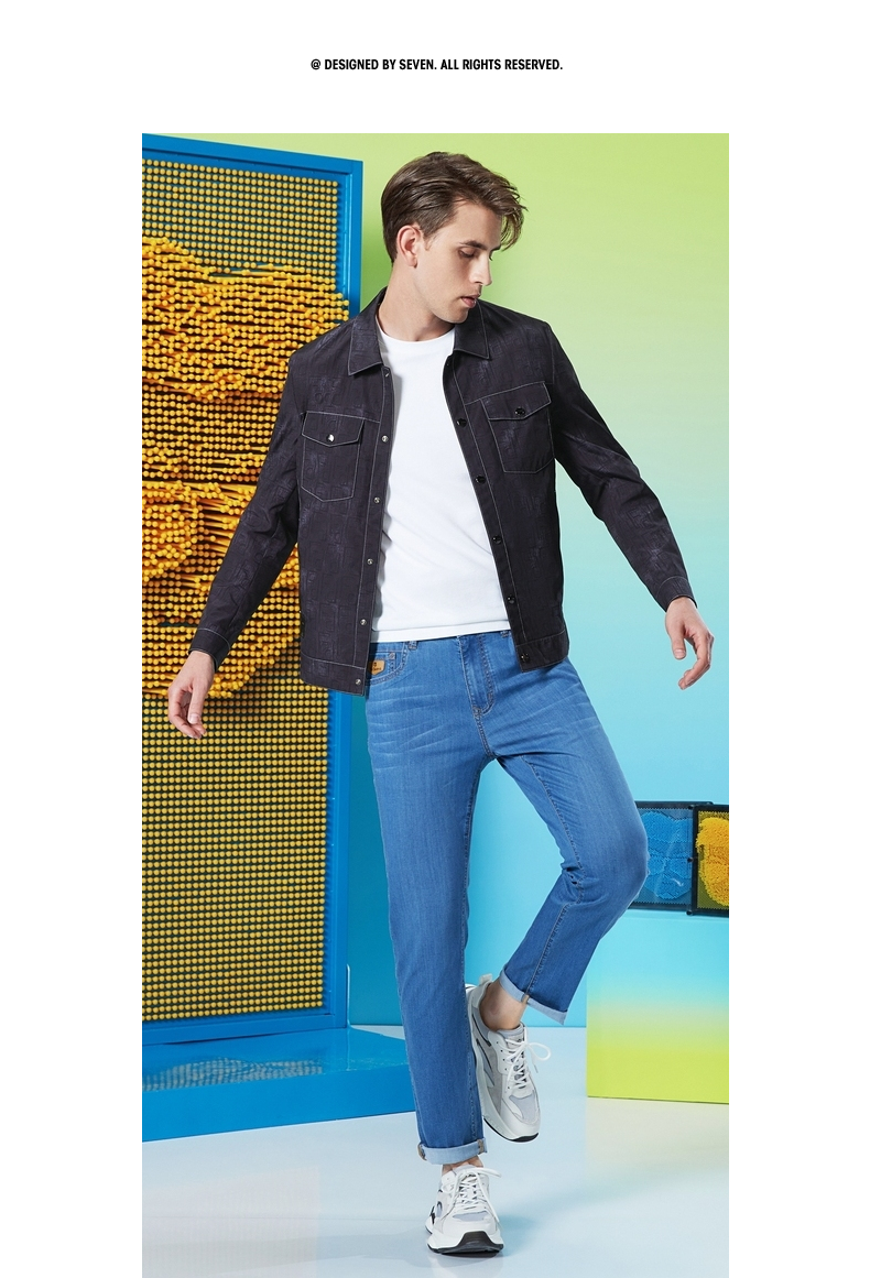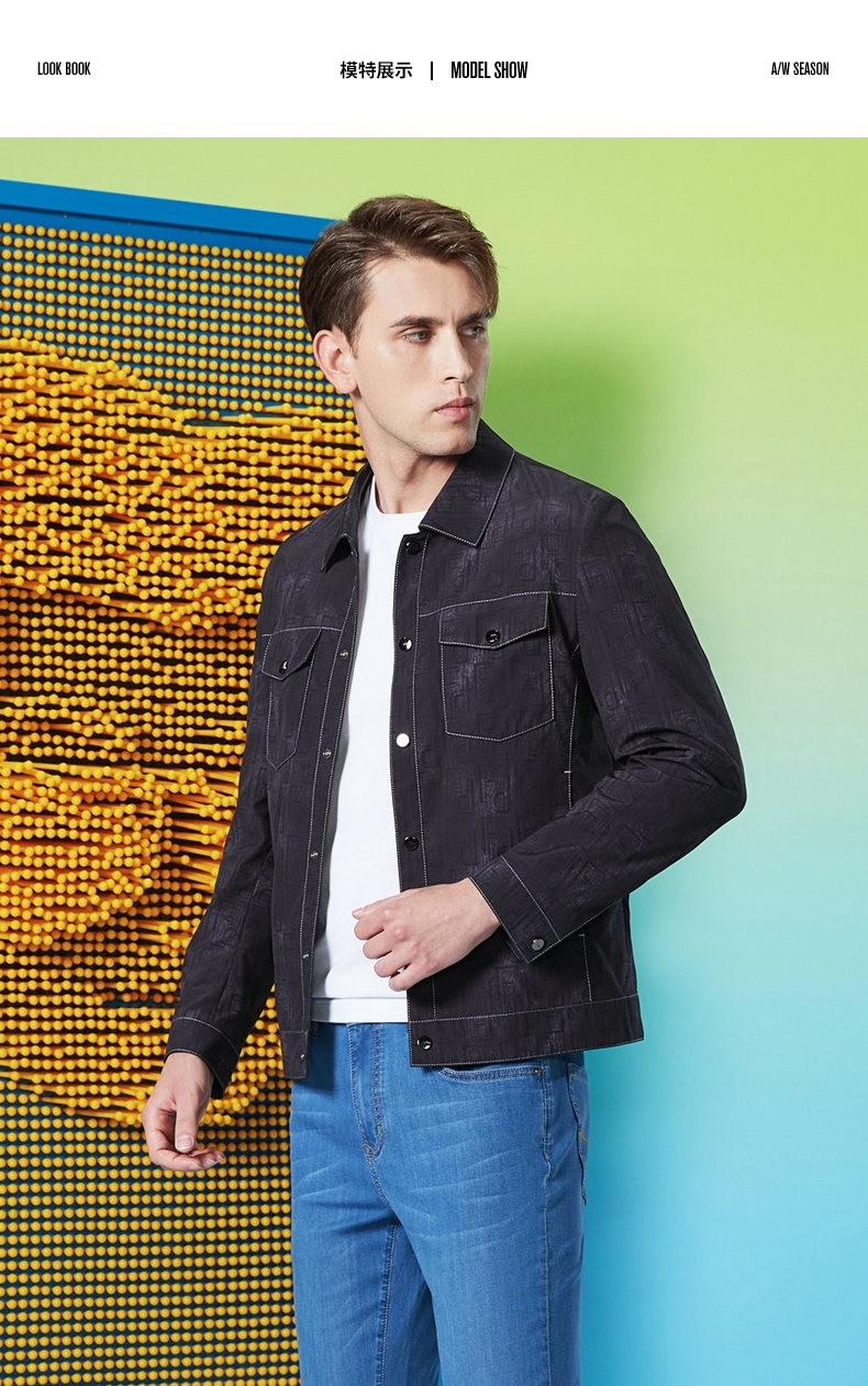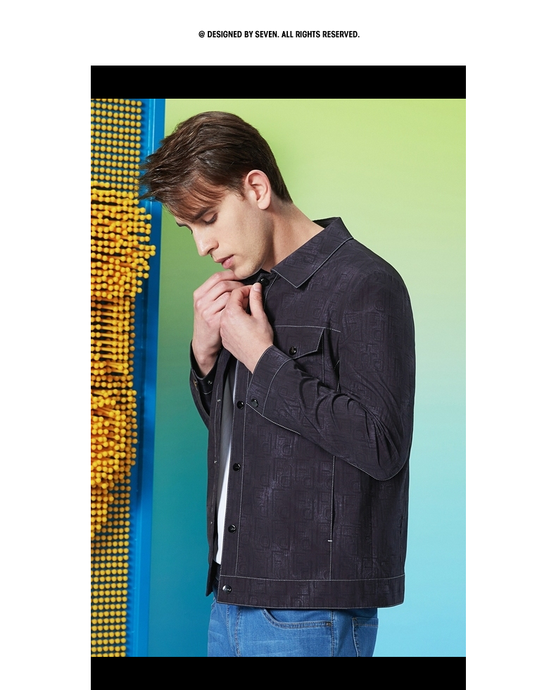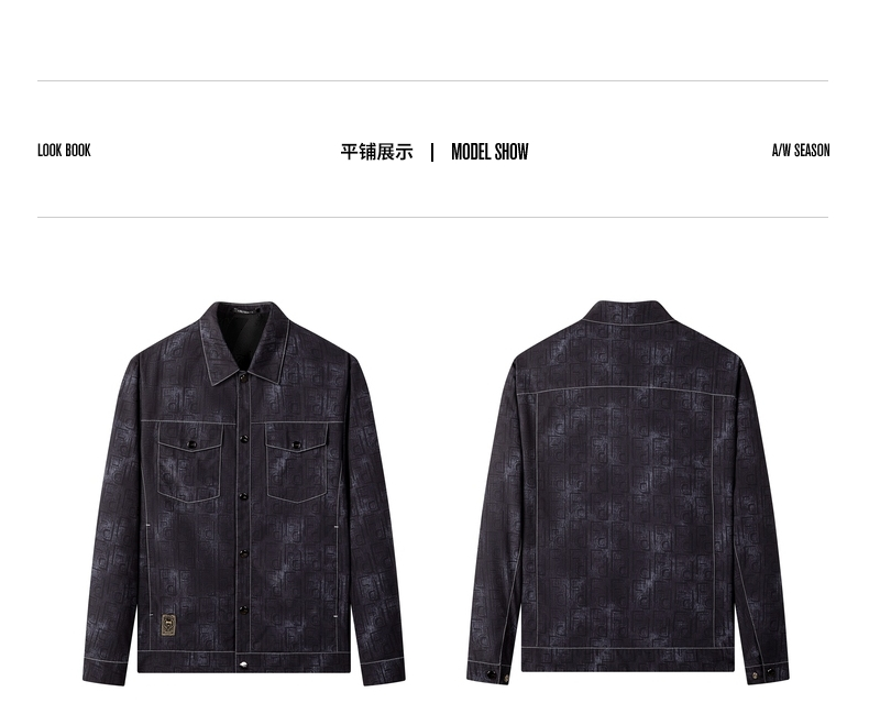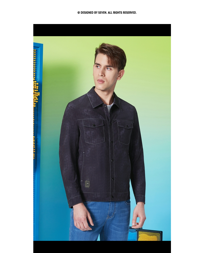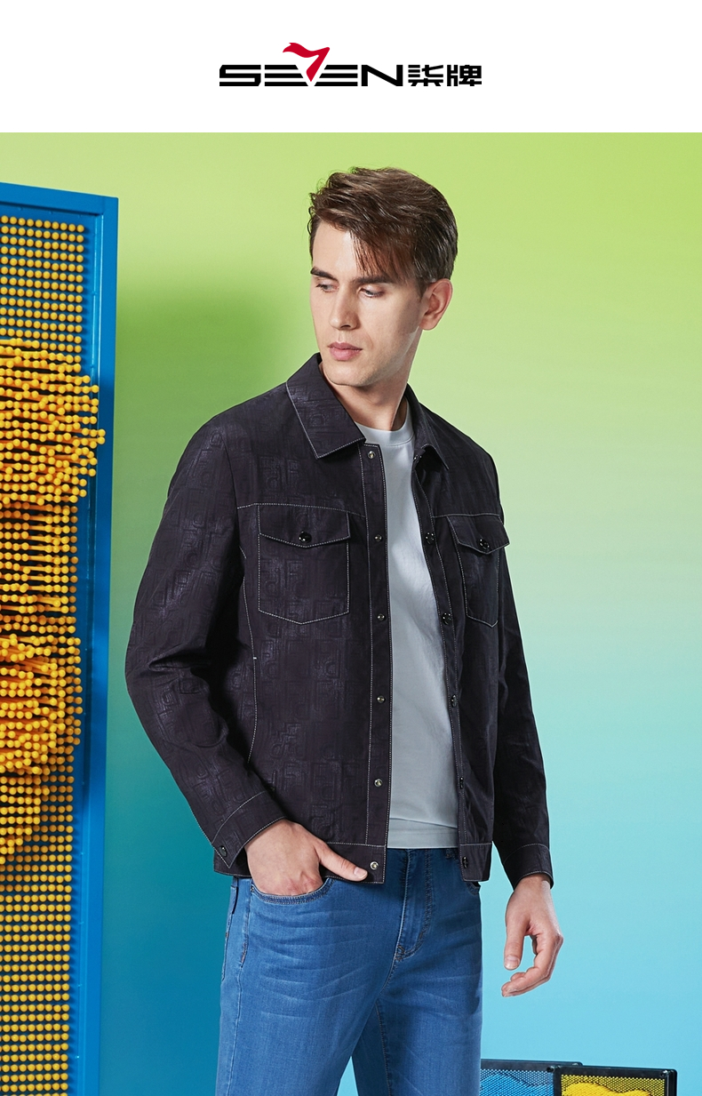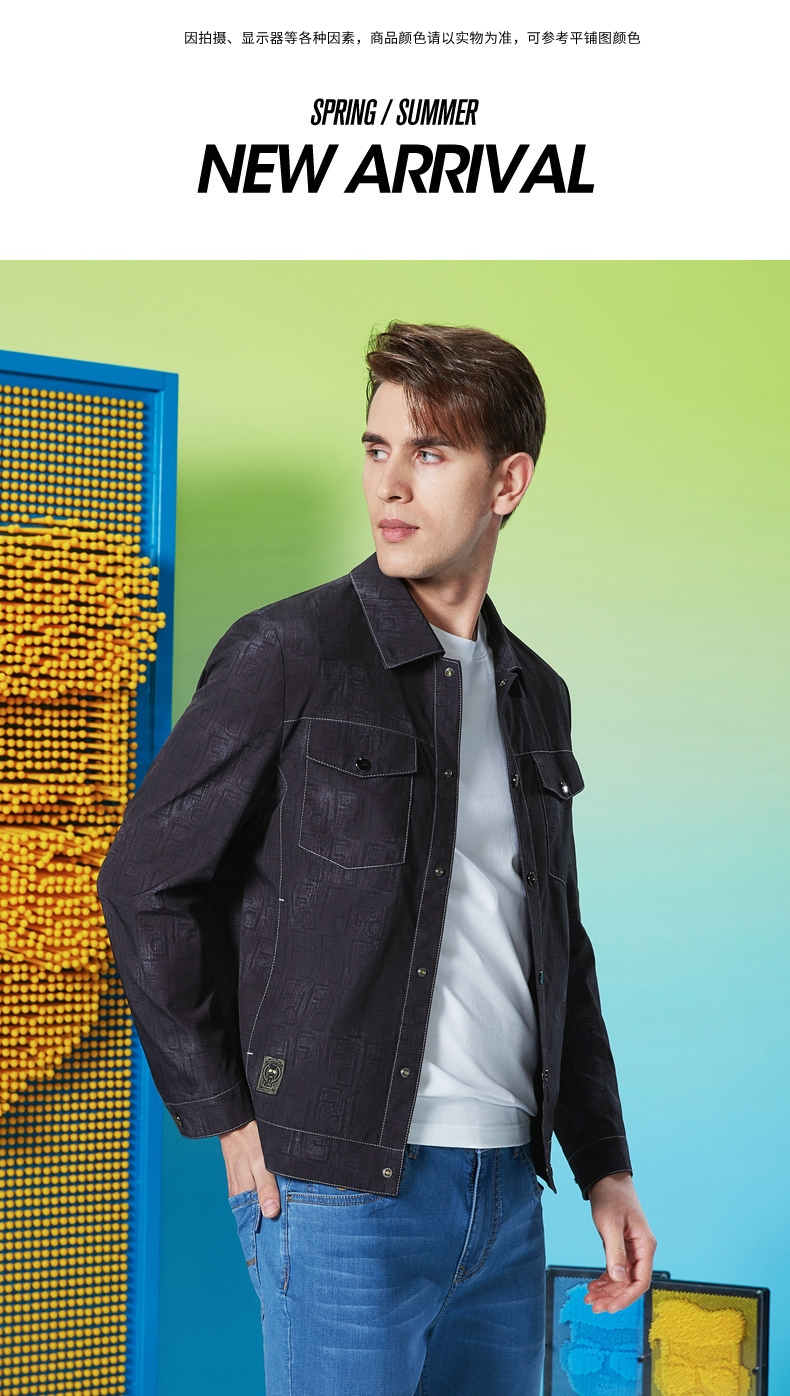 【特价】柒牌工装夹克男撞色翻领时尚潮流青年百搭字母印花长袖外套夹克衫 122K70280