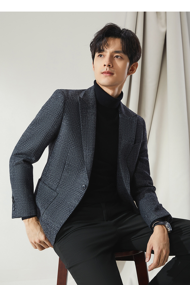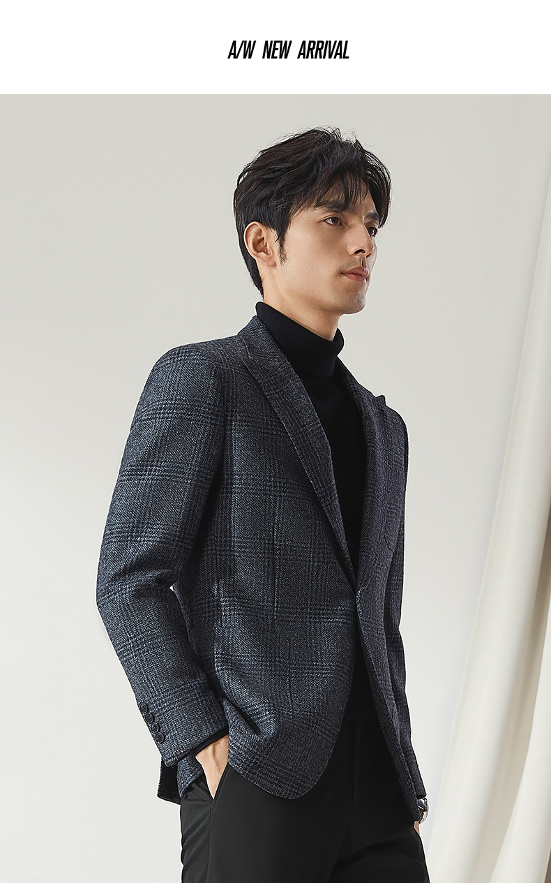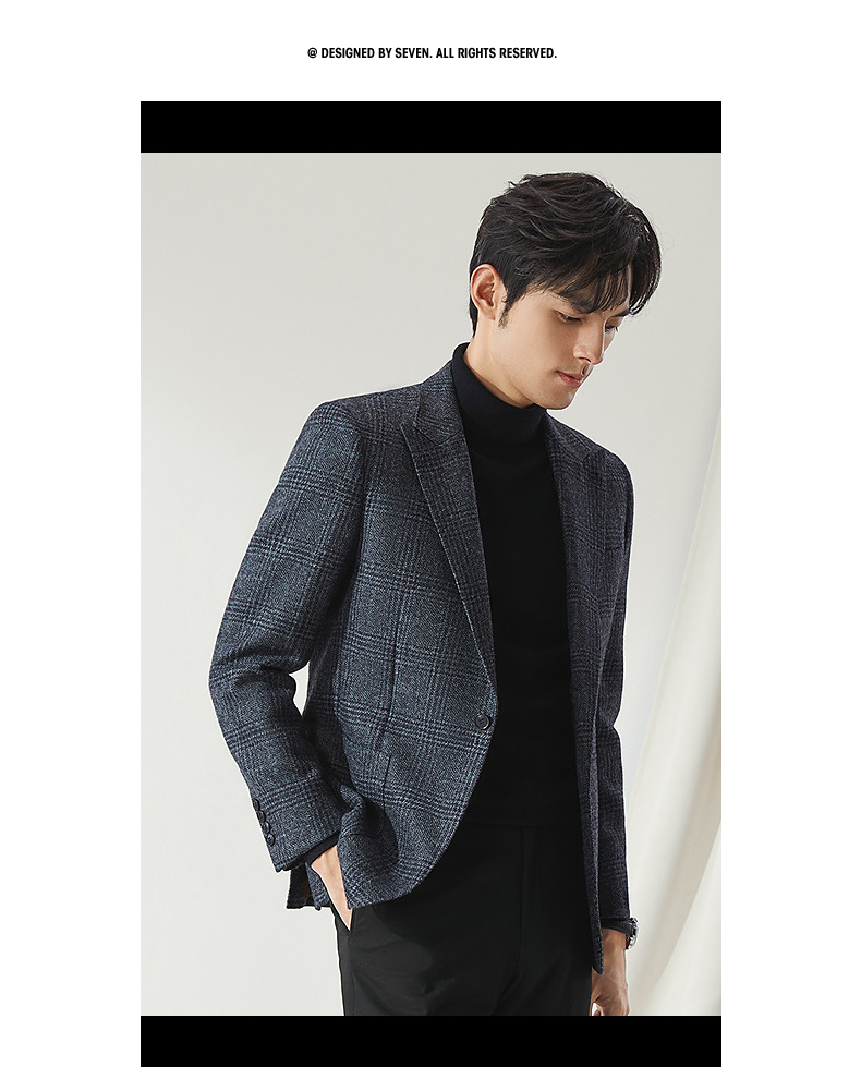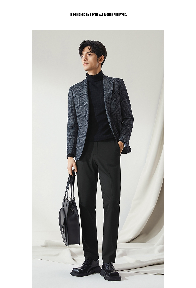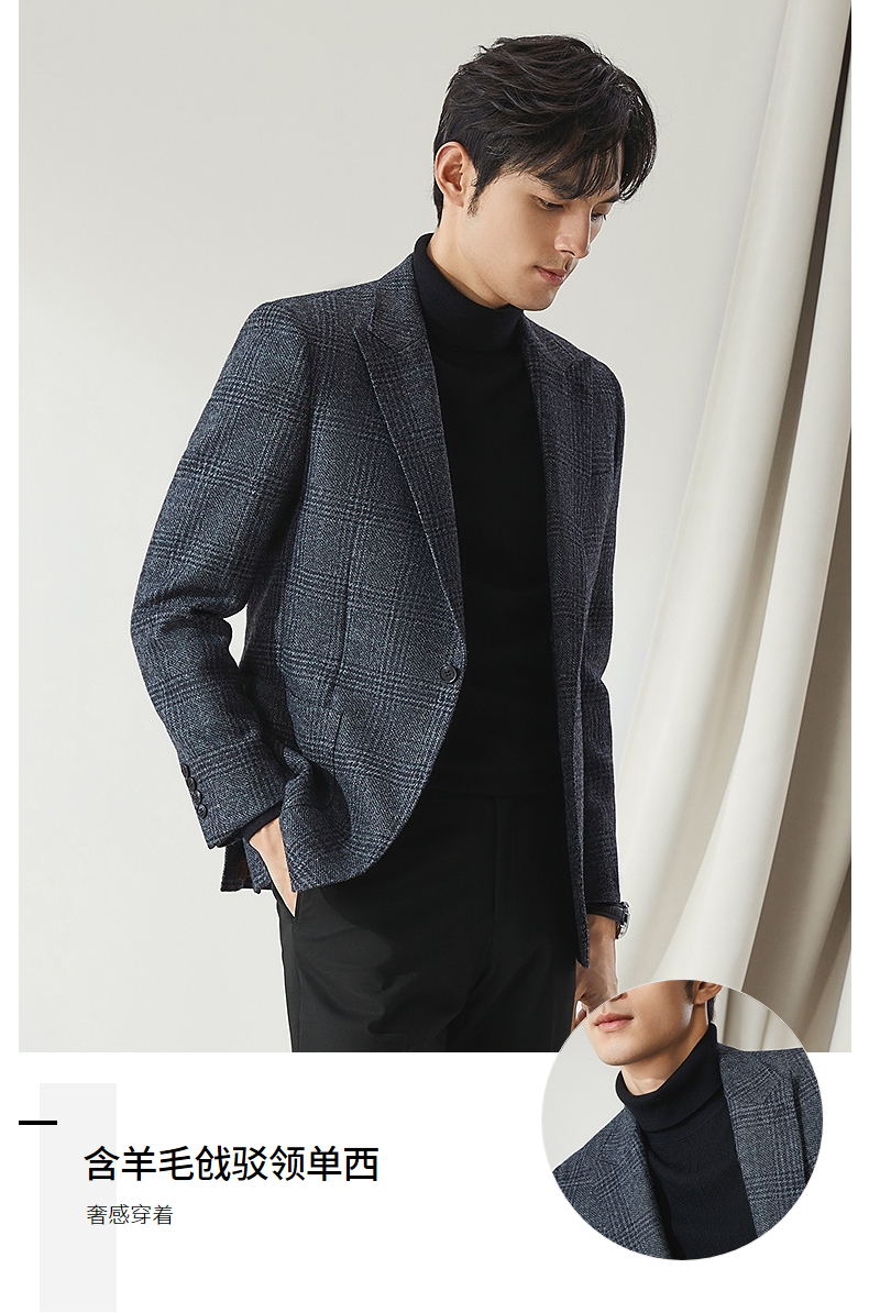 【高端系列】柒牌男装西服男2024秋冬新款商务格纹羊毛单西装外套 127C70990