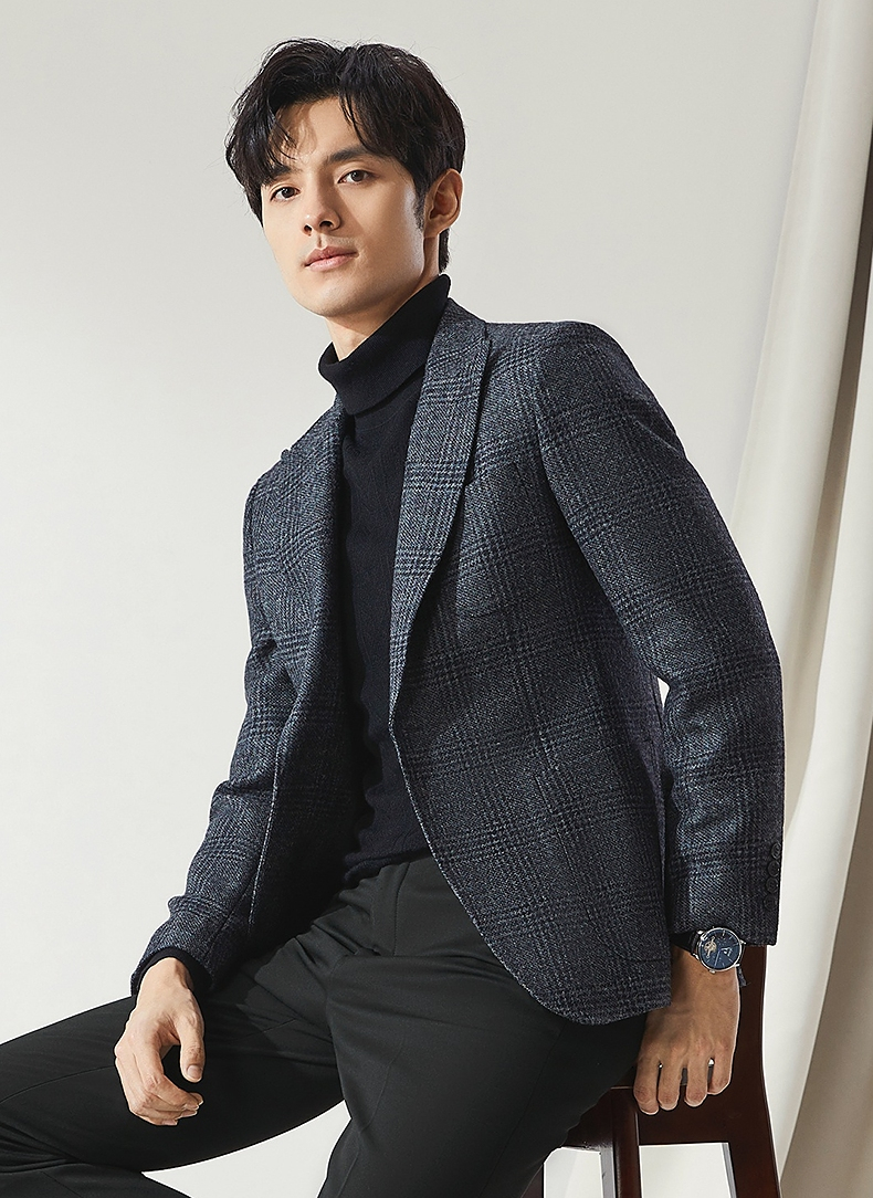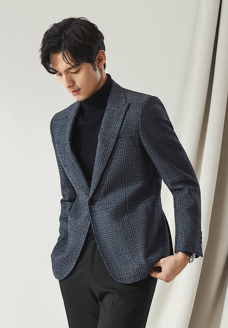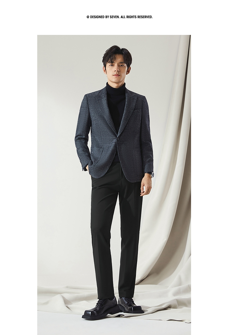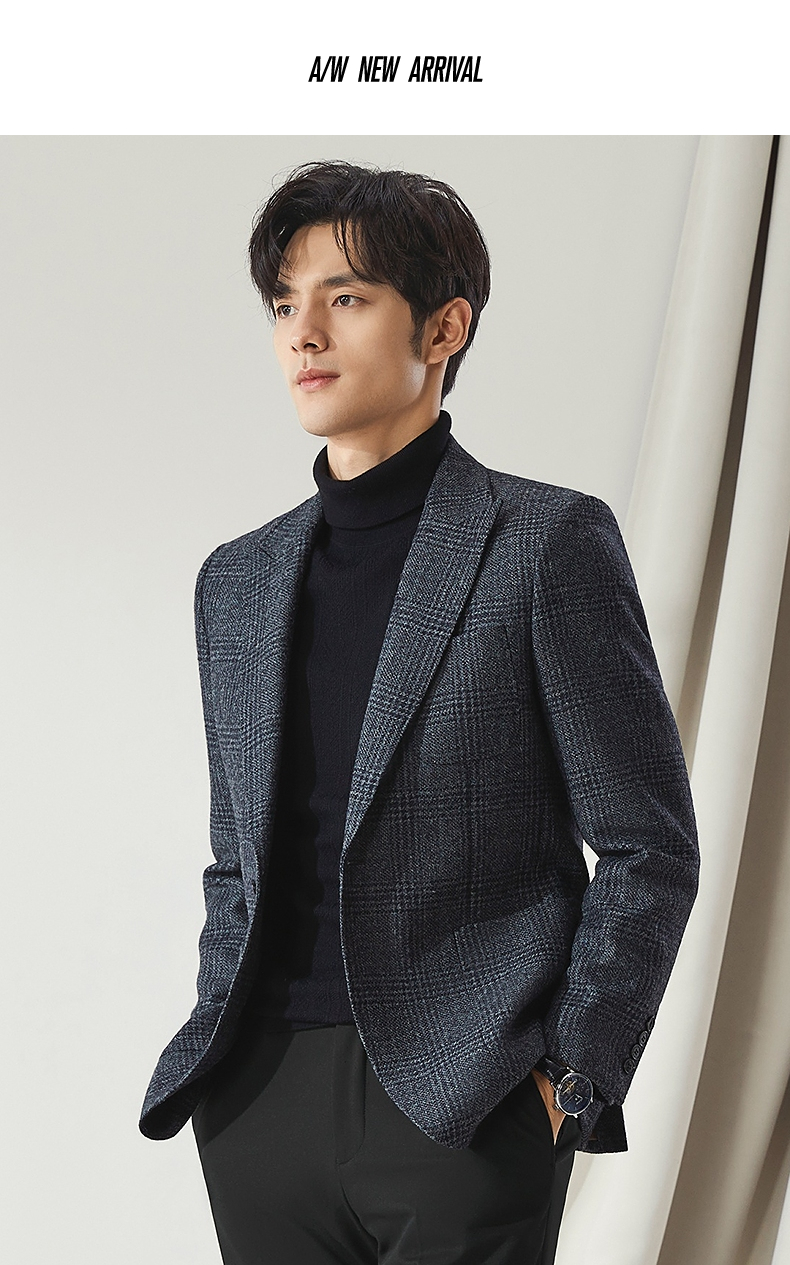 【高端系列】柒牌男装西服男2024秋冬新款商务格纹羊毛单西装外套 127C70990