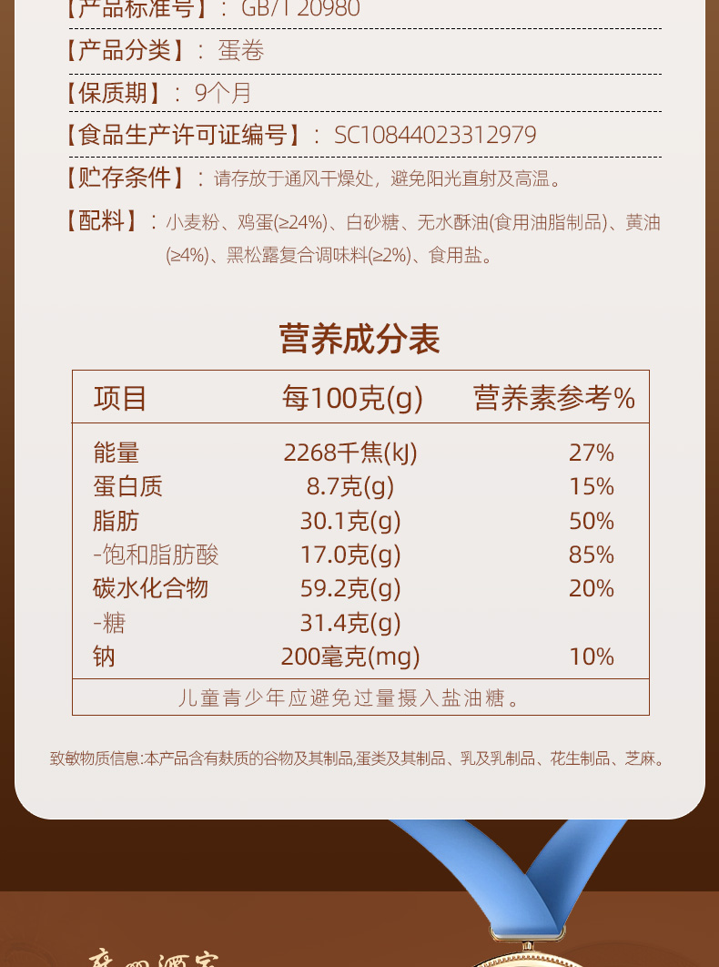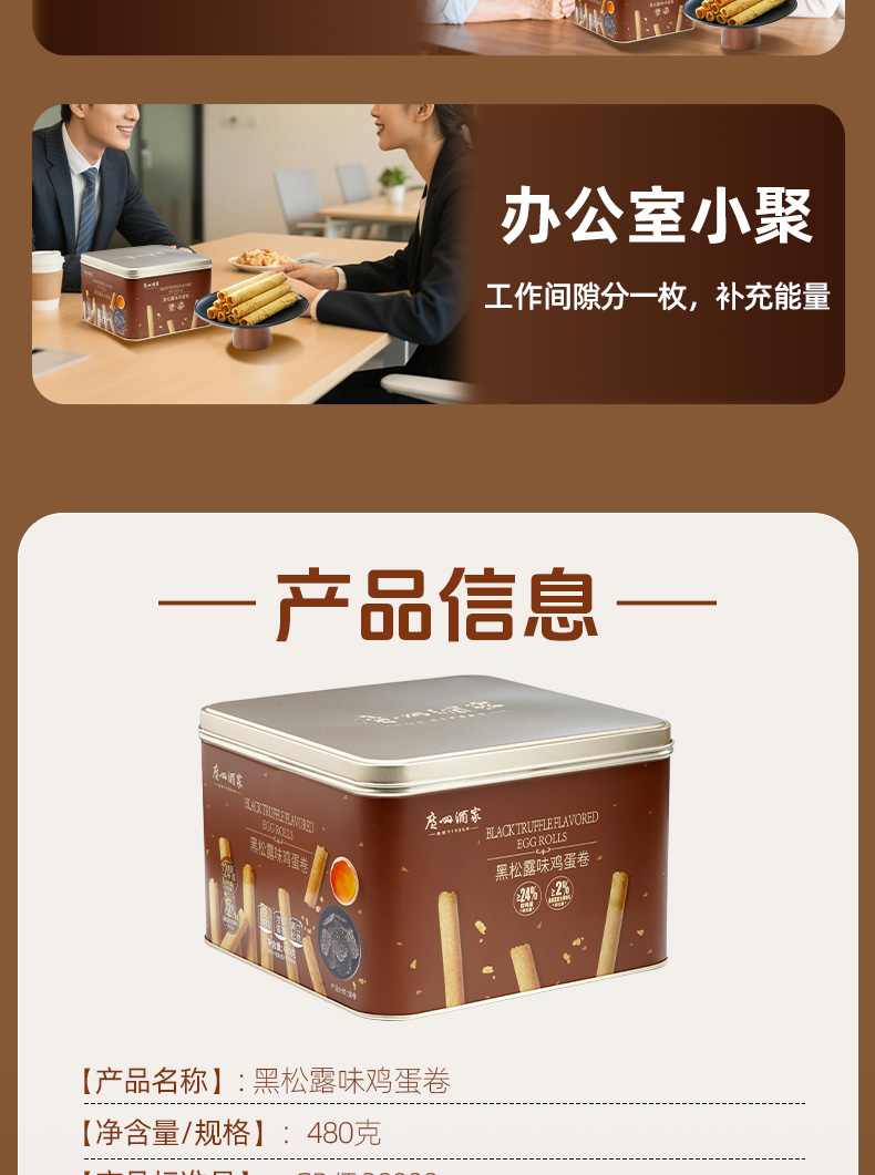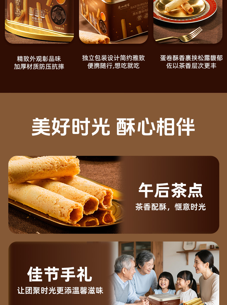 广州酒家 黑松露味鸡蛋卷礼盒零食点心酥饼干下午茶伴手礼手信特产